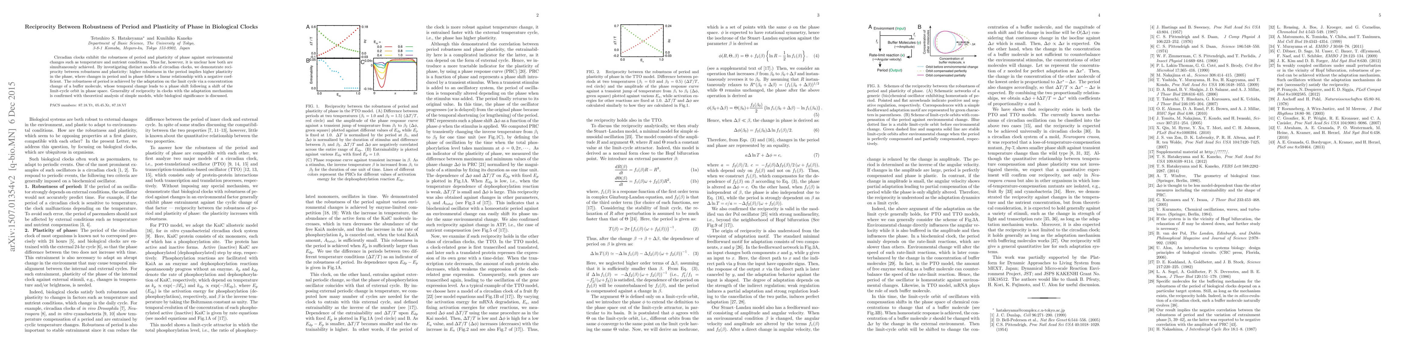 This paper investigates the relationship between the robustness of circadian clock period and the plasticity of phase, revealing a reciprocal relationship where increased robustness in period leads to higher phase plasticity. The study demonstrates this through theoretical models and discusses the biological implications of this adaptation mechanism.