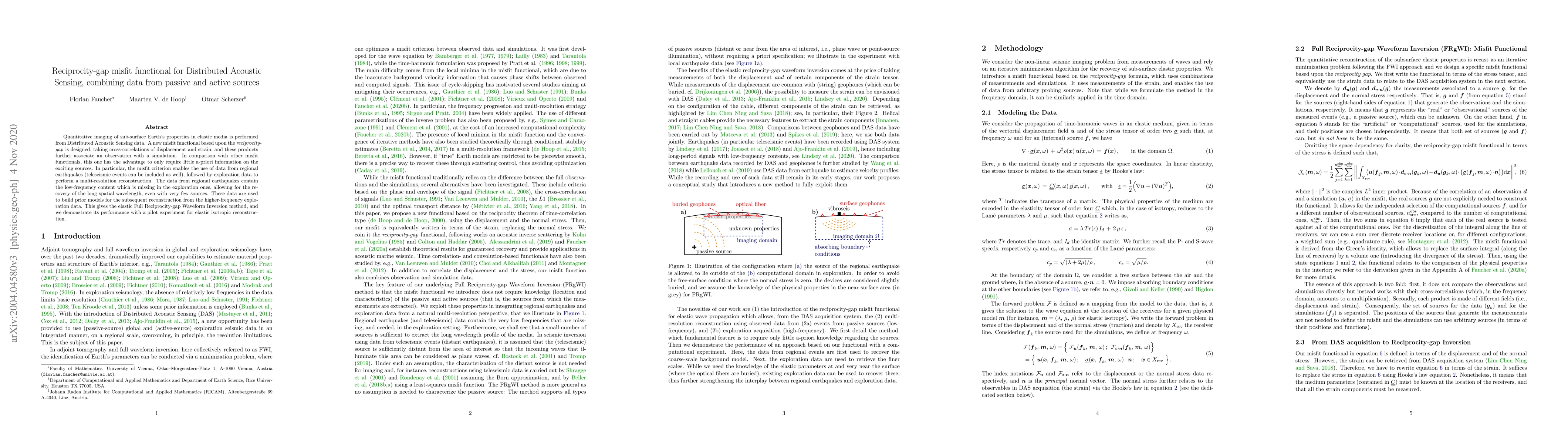 A new misfit functional based on reciprocity-gap is designed for Distributed Acoustic Sensing to perform sub-surface imaging with minimal a-priori information, allowing for multi-resolution reconstruction using regional earthquake data and exploration data.