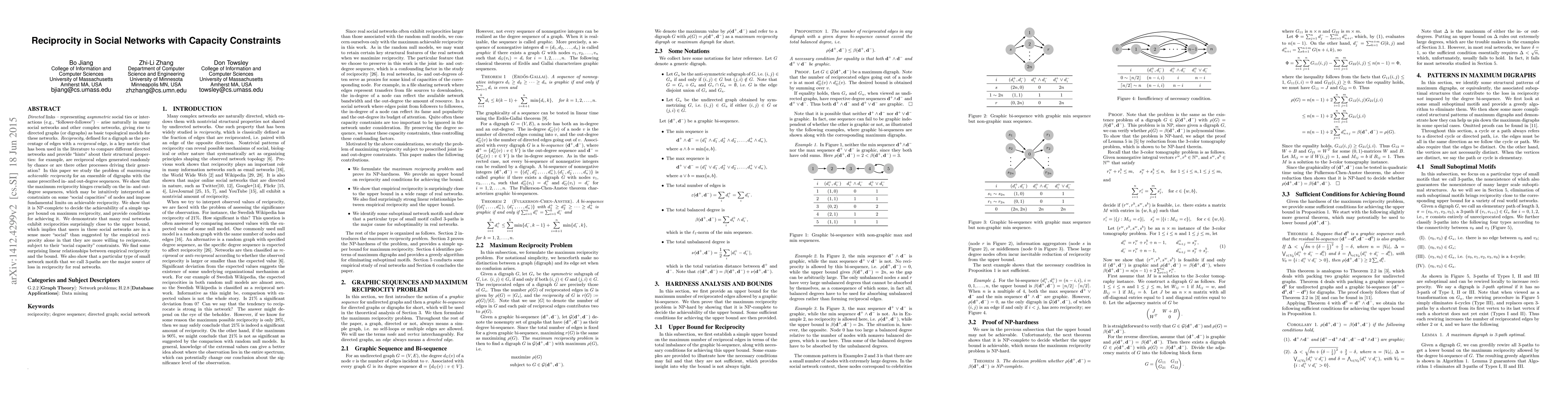 Directed links -- representing asymmetric social ties or interactions (e.g., "follower-followee") -- arise naturally in many social networks and other complex networks, giving rise to directed graphs (or digraphs) as basic topological models for these networks. Reciprocity, defined for a digraph as the percentage of edges with a reciprocal edge, is a key metric that has been used in the literature to compare different directed networks and provide "hints" about their structural properties: for example, are reciprocal edges generated randomly by chance or are there other processes driving their generation? In this paper we study the problem of maximizing achievable reciprocity for an ensemble of digraphs with the same prescribed in- and out-degree sequences. We show that the maximum reciprocity hinges crucially on the in- and out-degree sequences, which may be intuitively interpreted as constraints on some "social capacities" of nodes and impose fundamental limits on achievable reciprocity. We show that it is NP-complete to decide the achievability of a simple upper bound on maximum reciprocity, and provide conditions for achieving it. We demonstrate that many real networks exhibit reciprocities surprisingly close to the upper bound, which implies that users in these social networks are in a sense more "social" than suggested by the empirical reciprocity alone in that they are more willing to reciprocate, subject to their "social capacity" constraints. We find some surprising linear relationships between empirical reciprocity and the bound. We also show that a particular type of small network motifs that we call 3-paths are the major source of loss in reciprocity for real networks.
