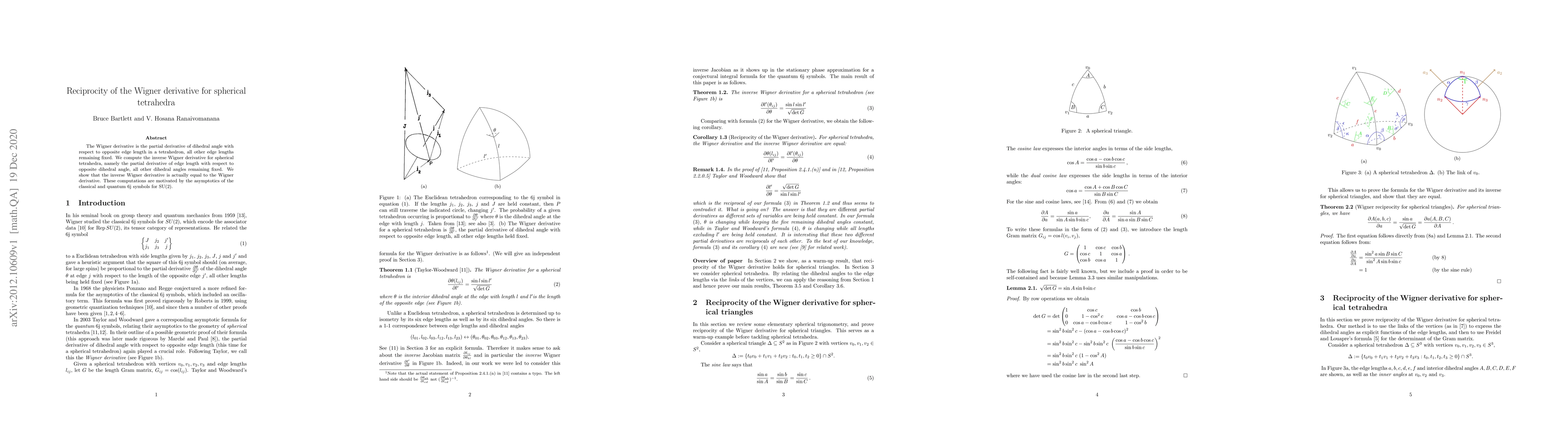The paper demonstrates that the inverse Wigner derivative for spherical tetrahedra equals the original Wigner derivative, revealing a reciprocity property. This finding is linked to the asymptotics of classical and quantum 6j symbols for SU(2).
