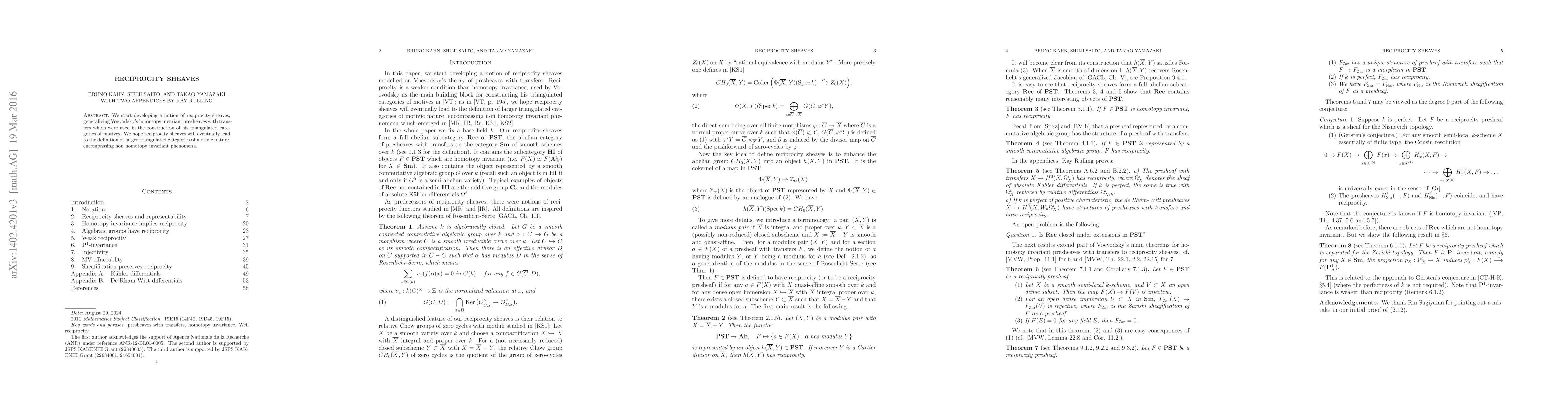 We start developing a notion of reciprocity sheaves, generalizing Voevodsky's homotopy invariant presheaves with transfers which were used in the construction of his triangulated categories of motives. We hope reciprocity sheaves will eventually lead to the definition of a larger triangulated category of motivic nature, encompassing non homotopy invariant phenomena.