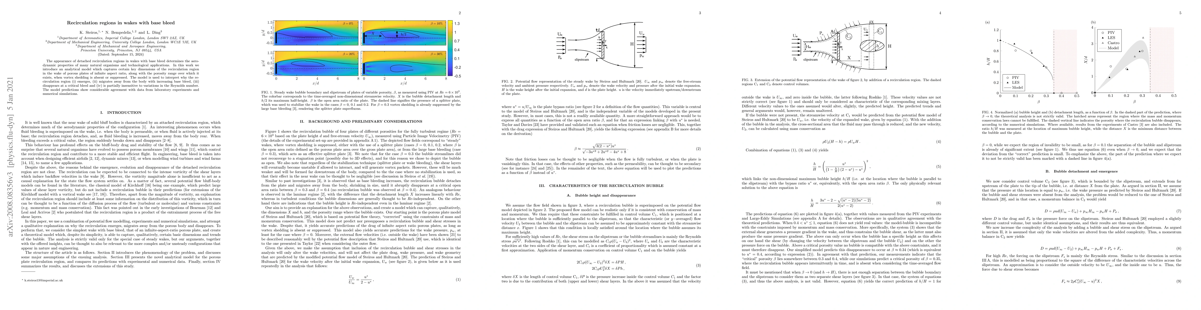 This research presents an analytical model explaining the formation, migration, and disappearance of recirculation regions in wakes with base bleed, observed in natural organisms and technological applications. The model accurately predicts these phenomena through laboratory experiments and numerical simulations, showing considerable agreement.