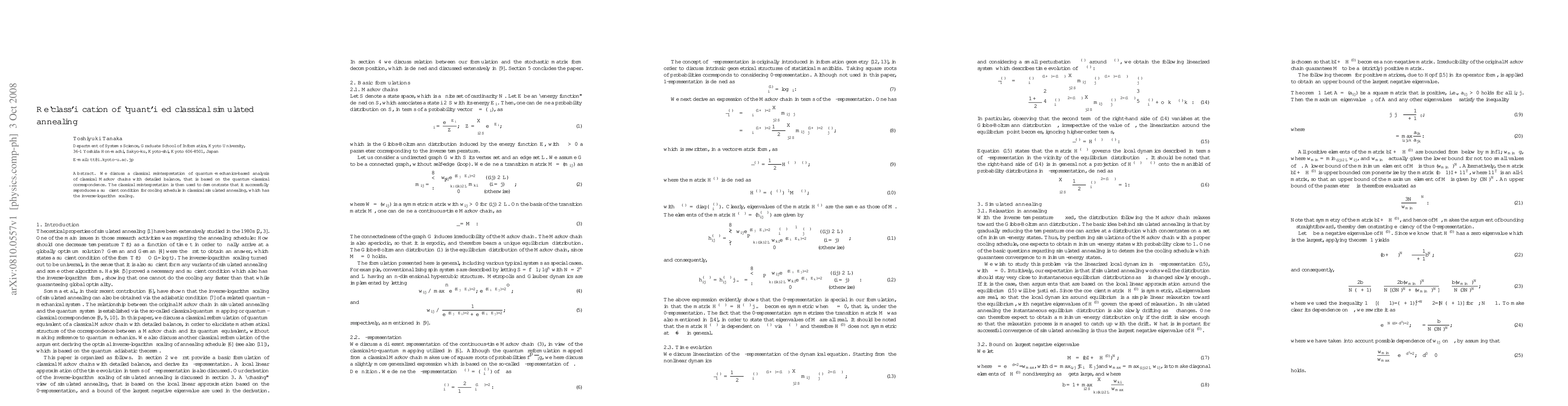 This paper reinterprets classical simulated annealing through a quantum-classical lens, successfully reproducing a cooling schedule with inverse-logarithmic scaling. It demonstrates the applicability of quantum mechanics-based analysis to classical Markov chains.