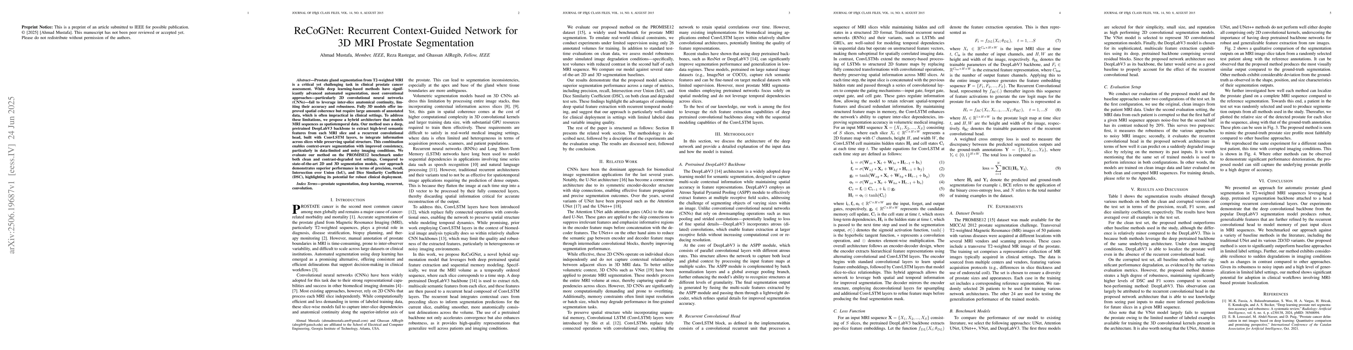 Prostate gland segmentation from T2-weighted MRI is a critical yet challenging task in clinical prostate cancer assessment. While deep learning-based methods have significantly advanced automated segmentation, most conventional approaches-particularly 2D convolutional neural networks (CNNs)-fail to leverage inter-slice anatomical continuity, limiting their accuracy and robustness. Fully 3D models offer improved spatial coherence but require large amounts of annotated data, which is often impractical in clinical settings. To address these limitations, we propose a hybrid architecture that models MRI sequences as spatiotemporal data. Our method uses a deep, pretrained DeepLabV3 backbone to extract high-level semantic features from each MRI slice and a recurrent convolutional head, built with ConvLSTM layers, to integrate information across slices while preserving spatial structure. This combination enables context-aware segmentation with improved consistency, particularly in data-limited and noisy imaging conditions. We evaluate our method on the PROMISE12 benchmark under both clean and contrast-degraded test settings. Compared to state-of-the-art 2D and 3D segmentation models, our approach demonstrates superior performance in terms of precision, recall, Intersection over Union (IoU), and Dice Similarity Coefficient (DSC), highlighting its potential for robust clinical deployment.