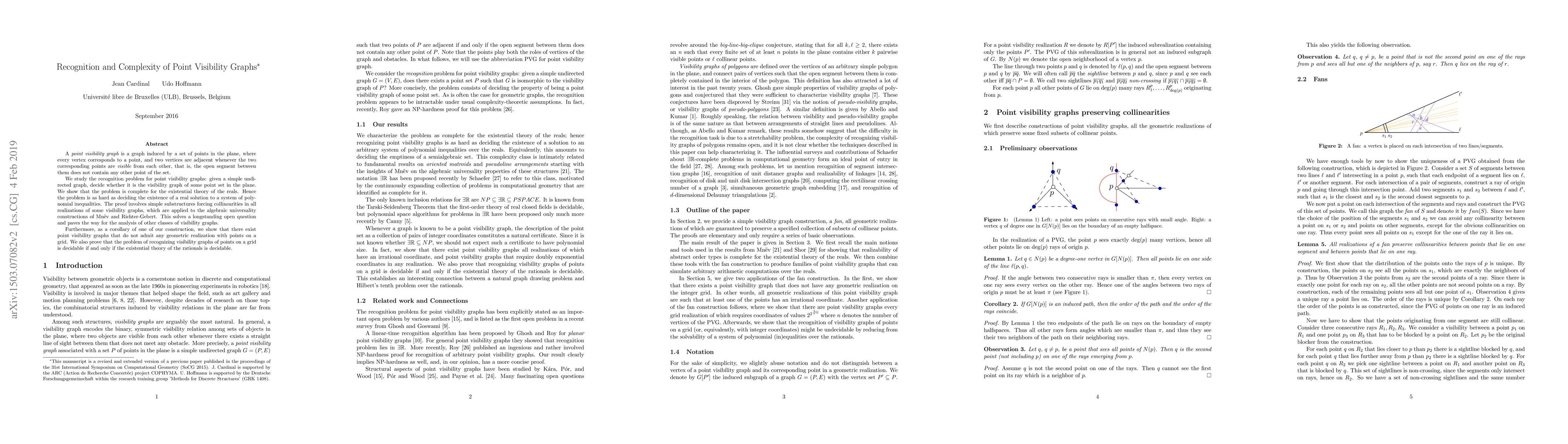 This paper addresses the recognition problem for point visibility graphs, proving it is complete for the existential theory of the reals, and demonstrates the existence of point visibility graphs that cannot be realized with integer coordinates.