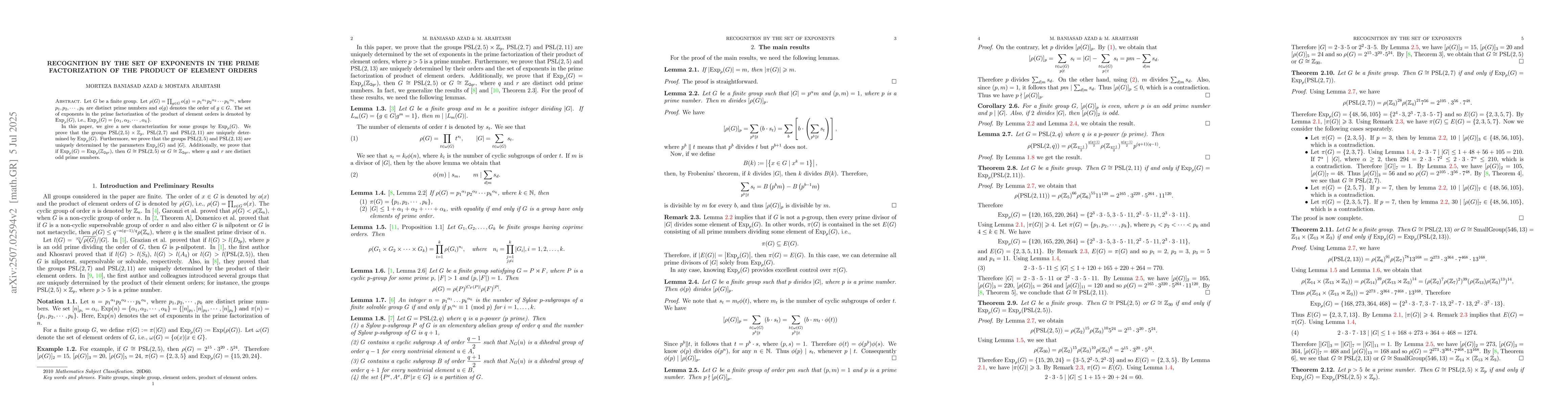 This paper presents a new method to characterize certain finite groups using the set of exponents in the prime factorization of the product of element orders, denoted as Exp_ρ(G). It proves that groups PSL(2, 5) × Z_p, PSL(2, 7), and PSL(2, 11) are uniquely determined by Exp_ρ(G). Additionally, PSL(2, 5) and PSL(2, 13) are uniquely identified by Exp_ρ(G) and |G|. The research also establishes that if Exp_ρ(G) equals Exp_ρ(Z_2qr), then G is isomorphic to PSL(2, 5) or Z_2qr, where q and r are distinct odd primes.