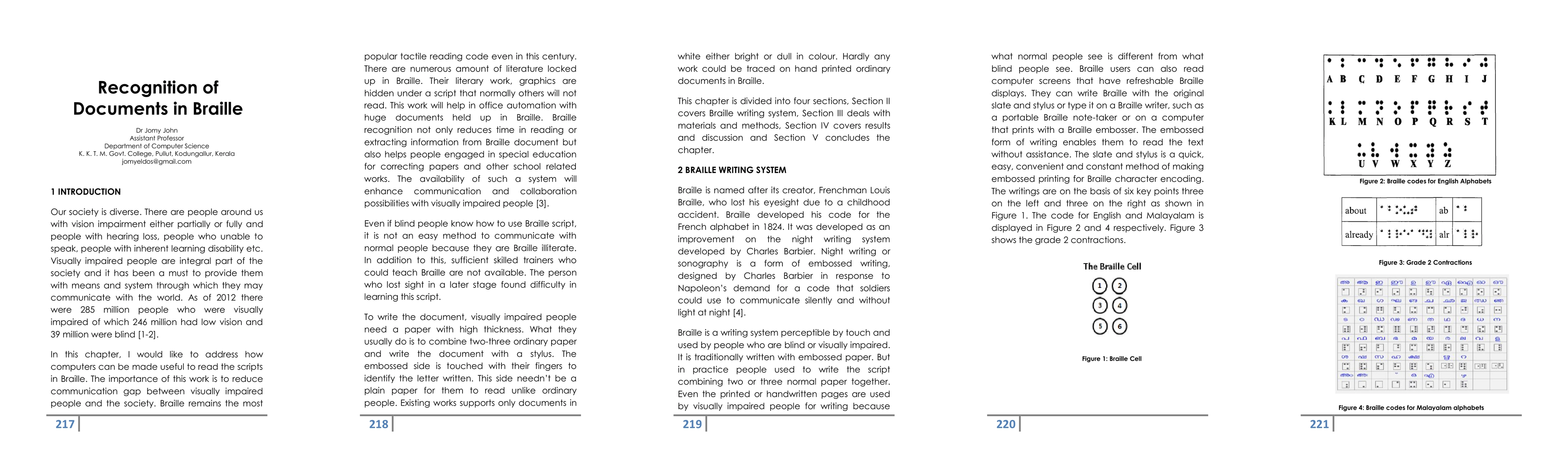 This paper explores the development of computer-based systems to recognize and read Braille documents, aiming to bridge the communication gap for visually impaired individuals. It highlights the need for efficient Braille recognition technology, especially for hand-printed documents, to enhance educational and informational accessibility.