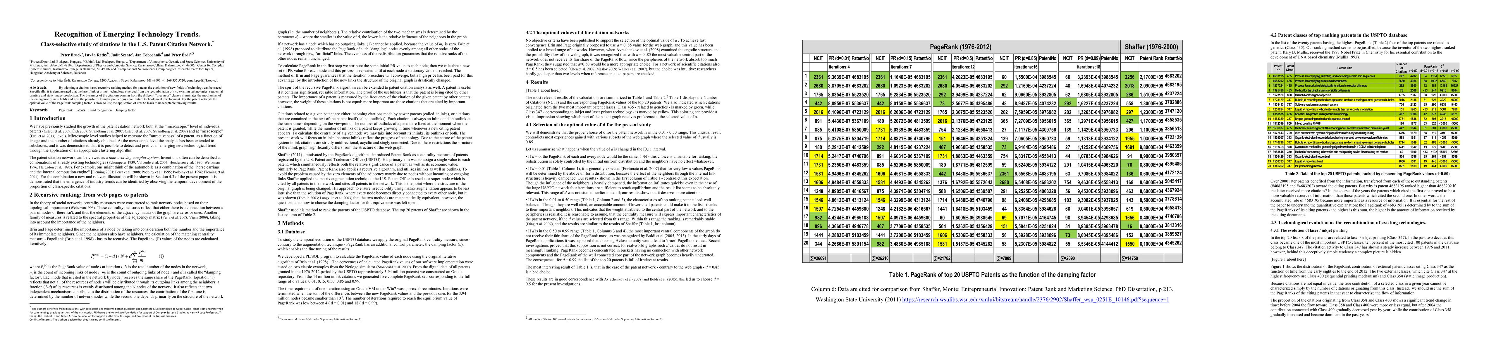 By adopting a citation-based recursive ranking method for patents the evolution of new fields of technology can be traced. Specifically, it is demonstrated that the laser / inkjet printer technology emerged from the recombination of two existing technologies: sequential printing and static image production. The dynamics of the citations coming from the different "precursor" classes illuminates the mechanism of the emergence of new fields and give the possibility to make predictions about future technological development. For the patent network the optimal value of the PageRank damping factor is close to 0.5; the application of d=0.85 leads to unacceptable ranking results.