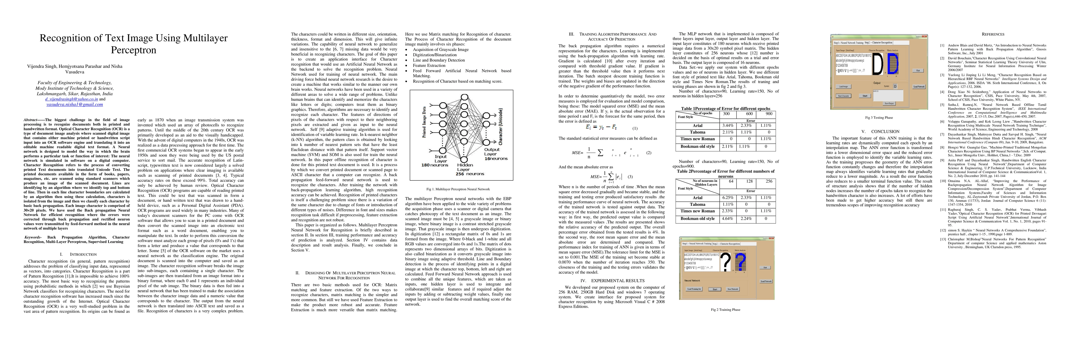 This paper explores the use of a Multilayer Perceptron (MLP) neural network for Optical Character Recognition (OCR) to convert scanned printed and handwritten text into editable digital text. The MLP employs backpropagation for error correction and character classification based on 30x20 pixel images.