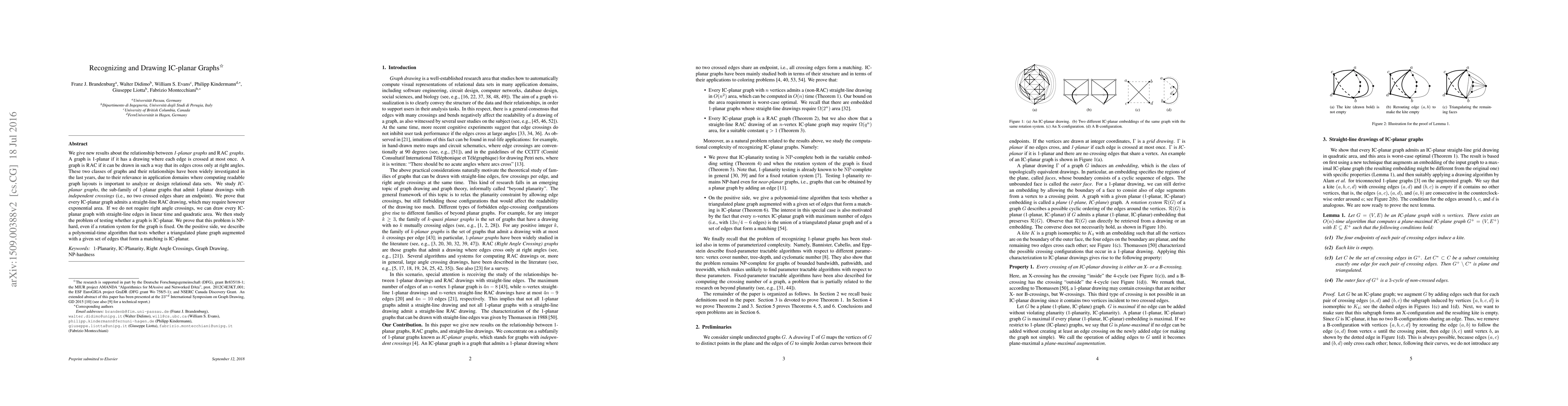 IC-planar graphs are those graphs that admit a drawing where no two crossed edges share an end-vertex and each edge is crossed at most once. They are a proper subfamily of the 1-planar graphs. Given an embedded IC-planar graph $G$ with $n$ vertices, we present an $O(n)$-time algorithm that computes a straight-line drawing of $G$ in quadratic area, and an $O(n^3)$-time algorithm that computes a straight-line drawing of $G$ with right-angle crossings in exponential area. Both these area requirements are worst-case optimal. We also show that it is NP-complete to test IC-planarity both in the general case and in the case in which a rotation system is fixed for the input graph. Furthermore, we describe a polynomial-time algorithm to test whether a set of matching edges can be added to a triangulated planar graph such that the resulting graph is IC-planar.