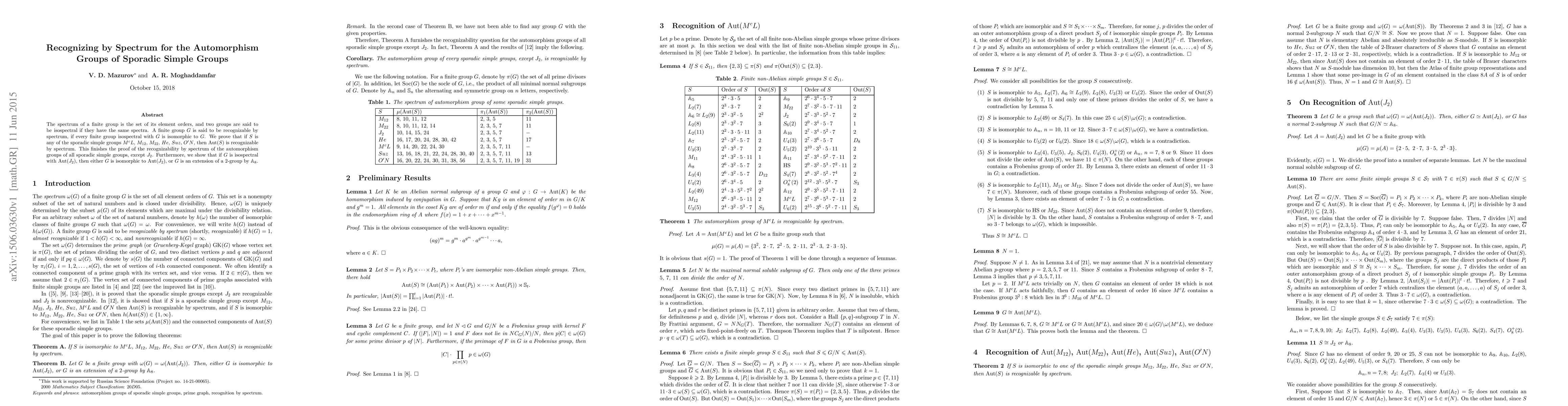 The spectrum of a finite group is the set of its element orders, and two groups are said to be isospectral if they have the same spectra. A finite group $G$ is said to be recognizable by spectrum, if every finite group isospectral with $G$ is isomorphic to $G$. We prove that if $S$ is any of the sporadic simple groups $M^cL$, $M_{12}$, $M_{22}$, $He$, $Suz$, $O'N$, then ${\rm Aut}(S)$ is recognizable by spectrum. This finishes the proof of the recognizability by spectrum of the automorphism groups of all sporadic simple groups, except $J_2$. Furthermore, we show that if $G$ is isospectral with ${\rm Aut}(J_2)$, then either $G$ is isomorphic to ${\rm Aut}(J_2)$, or $G$ is an extension of a $2$-group by $\mathbb{A}_8$.