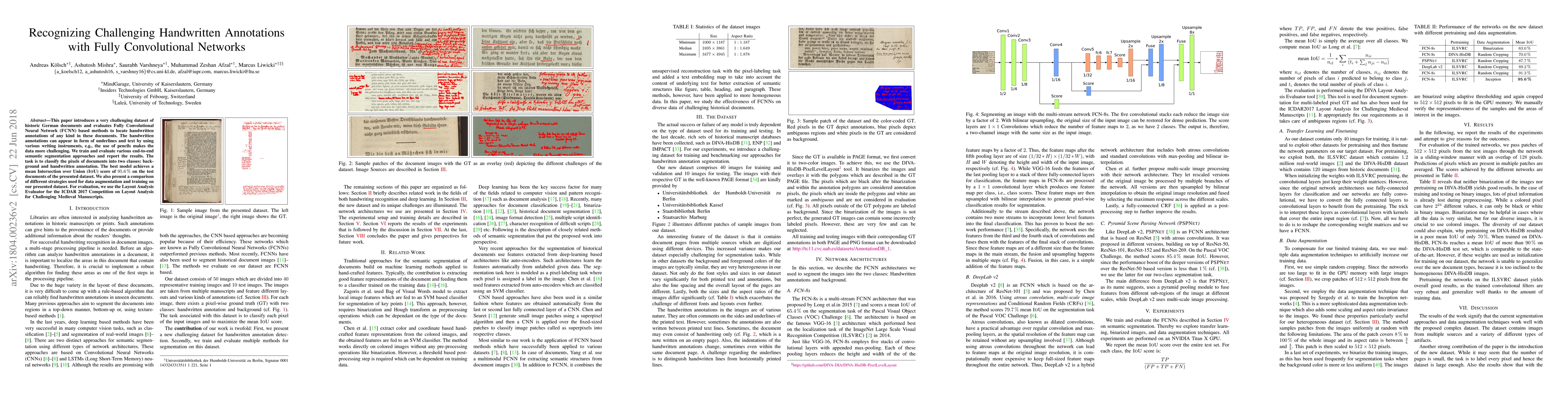This paper introduces a very challenging dataset of historic German documents and evaluates Fully Convolutional Neural Network (FCNN) based methods to locate handwritten annotations of any kind in these documents. The handwritten annotations can appear in form of underlines and text by using various writing instruments, e.g., the use of pencils makes the data more challenging. We train and evaluate various end-to-end semantic segmentation approaches and report the results. The task is to classify the pixels of documents into two classes: background and handwritten annotation. The best model achieves a mean Intersection over Union (IoU) score of 95.6% on the test documents of the presented dataset. We also present a comparison of different strategies used for data augmentation and training on our presented dataset. For evaluation, we use the Layout Analysis Evaluator for the ICDAR 2017 Competition on Layout Analysis for Challenging Medieval Manuscripts.