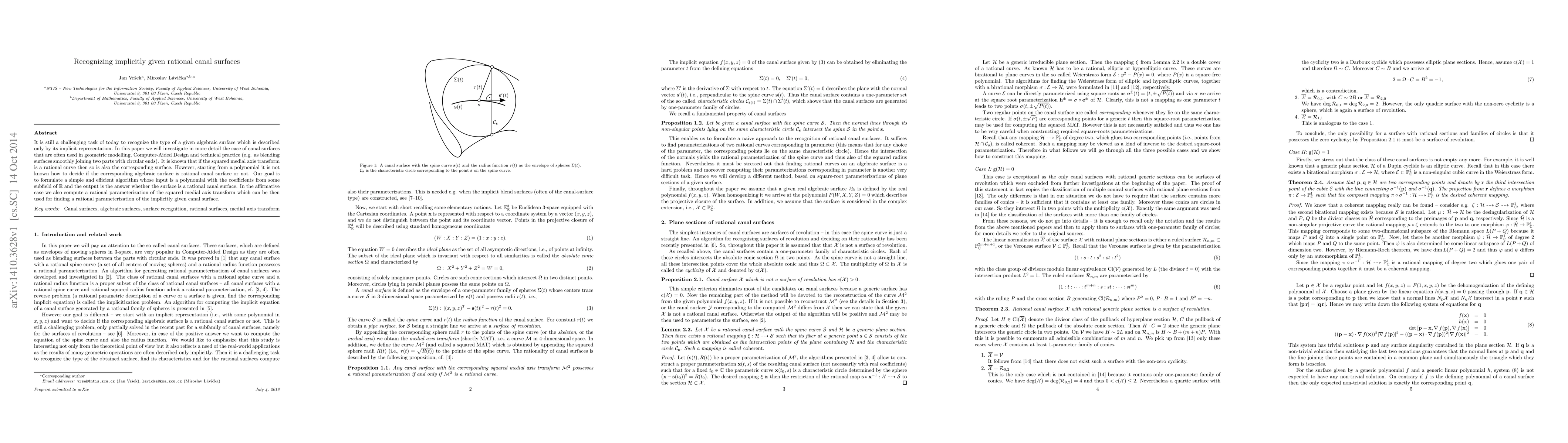 The main technical contribution of this research is the development of a new algorithm for recognizing rational canalsurfaces.