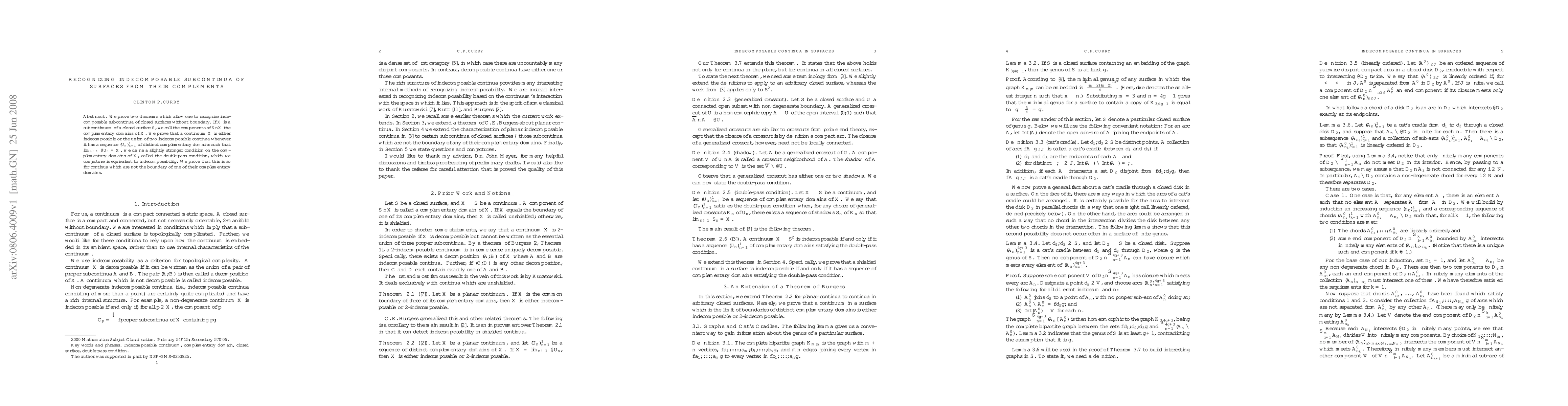 We prove two theorems which allow one to recognize indecomposable subcontinua of closed surfaces without boundary. If $X$ is a subcontinuum of a closed surface $S$, we call the components of $S \setminus X$ the complementary domains of $X$. We prove that a continuum is either indecomposable or the union of two indecomposable continua whenever it has a sequence of distinct complementary domains whose boundaries limit to the continuum in the Hausdorff metric. We define a slightly stronger condition on the complementary domains of a continuum, called the double-pass condition, which we conjecture is equivalent to indecomposability of the continuum. We prove that this is so for continua which are not the boundary of one of their complementary domains.
