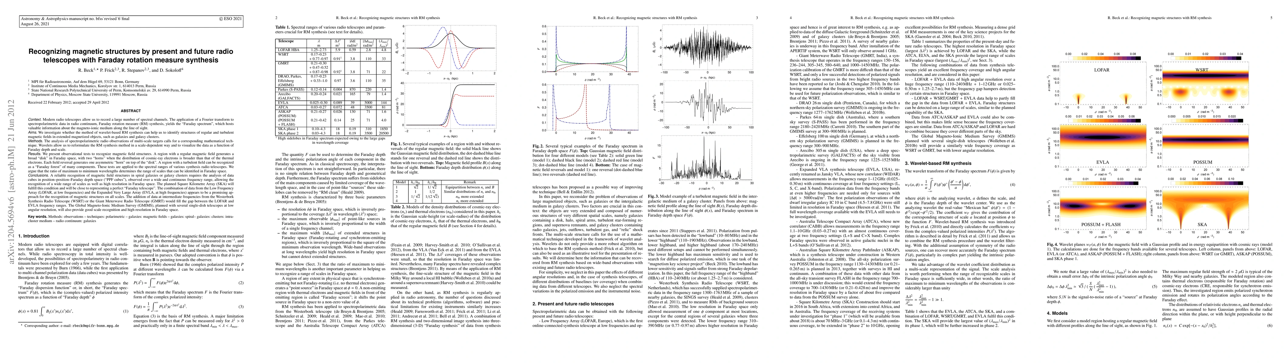 We investigate whether the method of wavelet-based Faraday rotation measure (RM) Synthesis can help us to identify structures of regular and turbulent magnetic fields in extended magnetized objects, such as galaxies and galaxy clusters. Wavelets allow us to reformulate the RM synthesis method in a scale-dependent way and to visualize the data as a function of Faraday depth and scale. We present observational tests to recognize magnetic field structures. A region with a regular magnetic field generates a broad "disk" in Faraday space ("Faraday spectrum"), with two "horns" when the distribution of cosmic-ray electrons is broader than that of the thermal electrons. Each magnetic field reversal generates one asymmetric "horn" on top of the "disk". A region with a turbulent field can be recognized as a "Faraday forest" of many components. These tests are applied to the spectral ranges of various synthesis radio telescopes. We argue that the ratio of maximum to minimum wavelengths determines the range of scales that can be identified in Faraday space. A reliable recognition of magnetic field structures requires the analysis of data cubes in position-position-Faraday depth space ("PPF cubes"), observed over a wide and continuous wavelength range, allowing the recognition of a wide range of scales as well as high resolution in Faraday space. The planned Square Kilometre Array (SKA) will fulfill this condition and will be close to representing a perfect "Faraday telescope". The combination of data from the Low Frequency Array (LOFAR) and the Expanded Very Large Array (EVLA) appears to be a promising approach for the recognition of magnetic structures on all scales. The addition of data at intermediate frequencies from the Westerbork Synthesis Radio Telescope (WSRT) or the Giant Meterwave Radio Telescope (GMRT) would fill the gap between the LOFAR and EVLA frequency ranges.