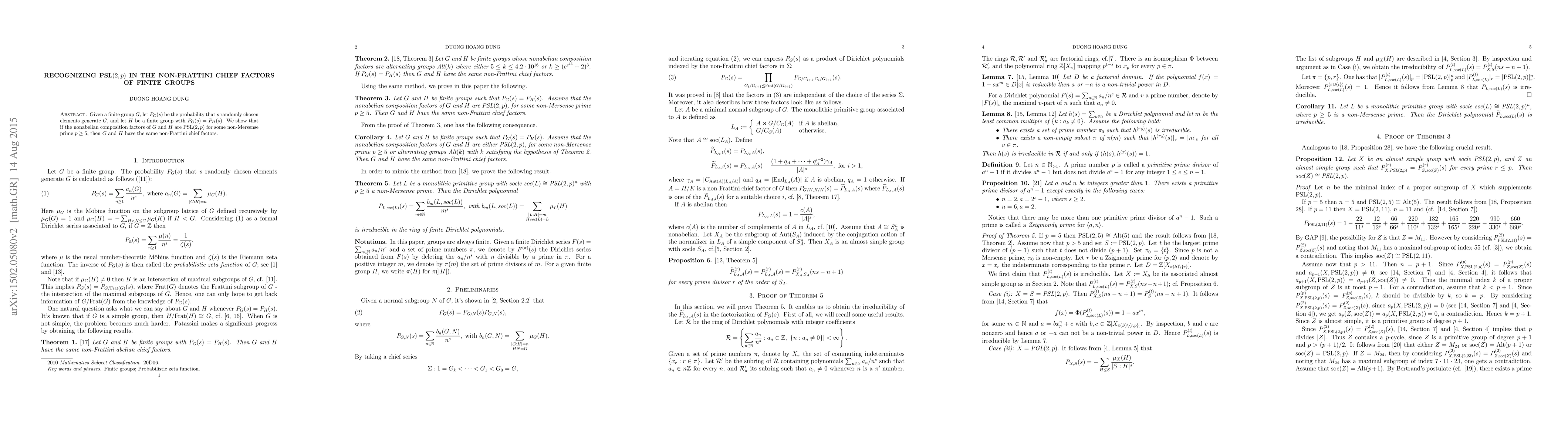 Given a finite group $G$, let $P_G(s)$ be the probability that $s$ randomly chosen elements generate $G$, and let $H$ be a finite group with $P_G(s)=P_H(s)$. We show that if the nonabelian composition factors of $G$ and $H$ are $\mathrm{PSL}(2,p)$ for some non-Mersense prime $p\geq 5$, then $G$ and $H$ have the same non-Frattini chief factors.