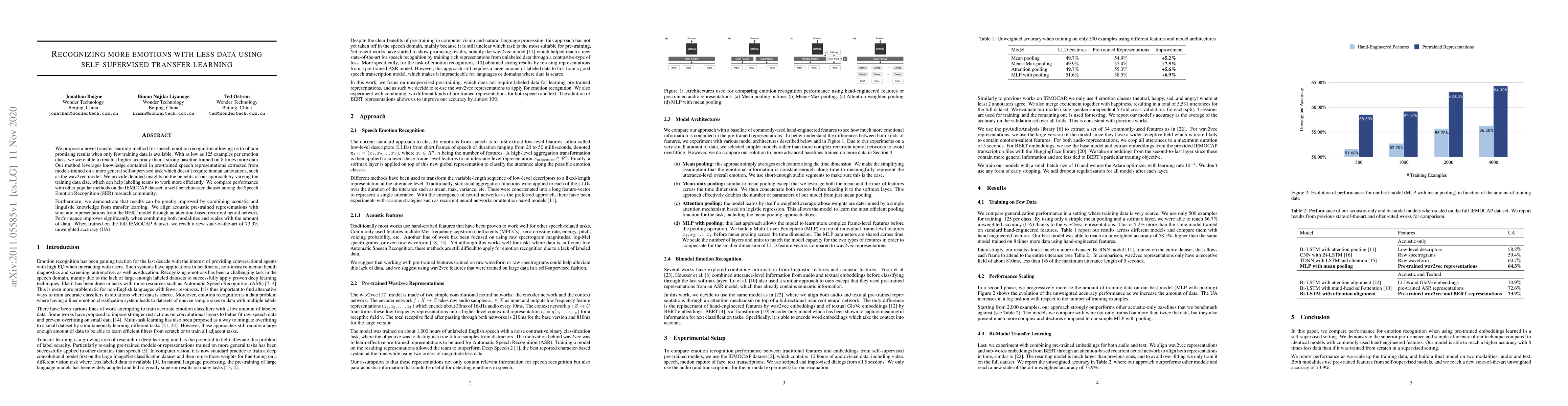 Researchers developed a self-supervised transfer learning method that achieved high accuracy in speech emotion recognition using only 125 examples per emotion class, outperforming a baseline trained on 8 times more data.
