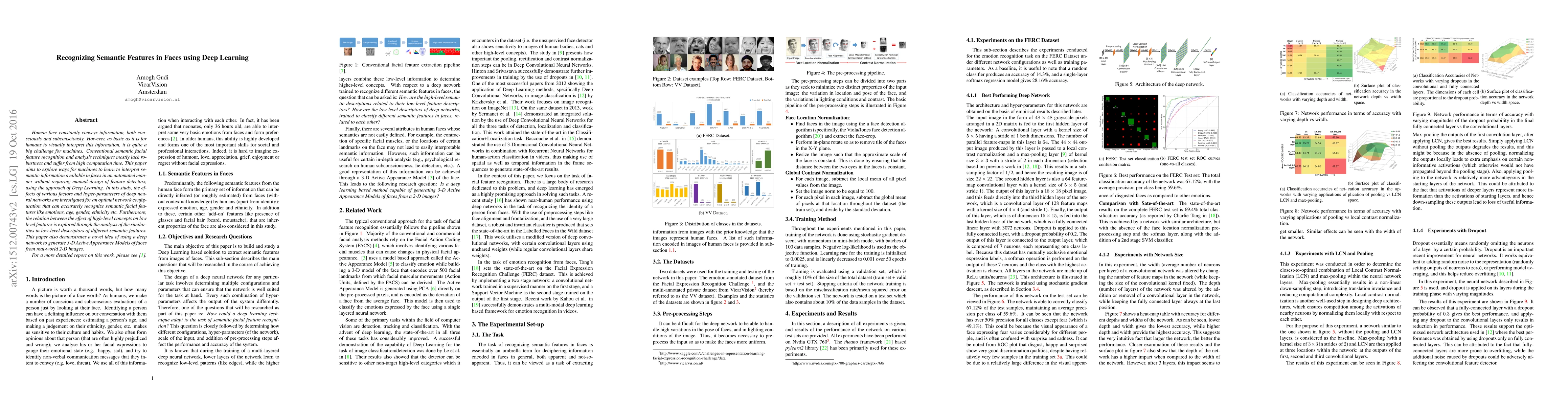 This paper explores deep learning techniques for automated semantic facial feature recognition, aiming to overcome the limitations of conventional methods. It investigates the optimal network configuration for recognizing features like emotions and age, and introduces a novel approach to generate 3-D Active Appearance Models from 2-D images.