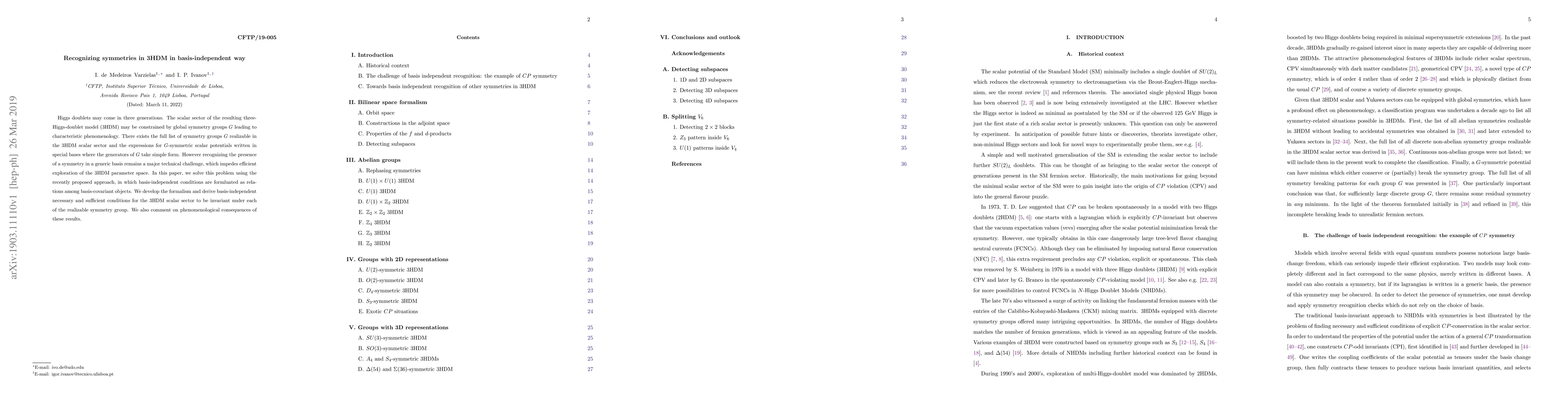 Researchers developed a method to recognize symmetries in three-Higgs-doublet models without needing a specific basis, allowing for more efficient exploration of the model's parameter space.