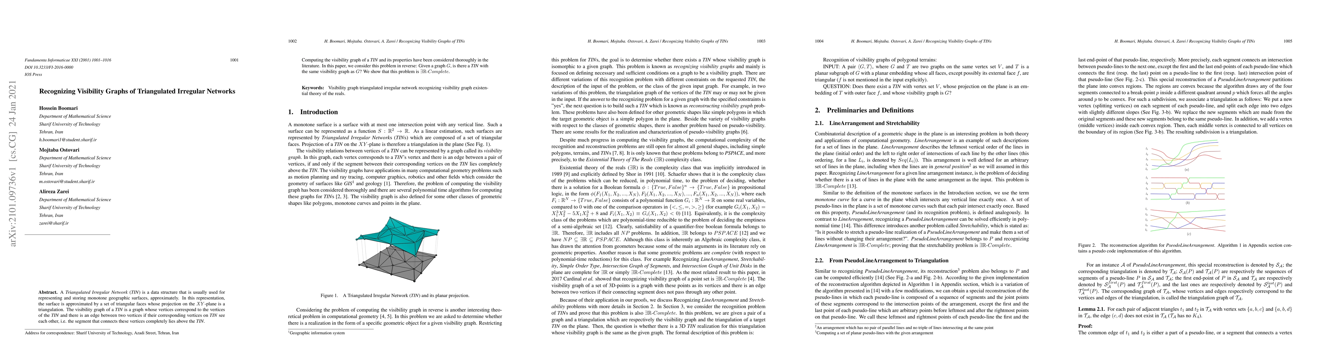 A Triangulated Irregular Network (TIN) is a data structure that is usually used for representing and storing monotone geographic surfaces, approximately. In this representation, the surface is approximated by a set of triangular faces whose projection on the XY-plane is a triangulation. The visibility graph of a TIN is a graph whose vertices correspond to the vertices of the TIN and there is an edge between two vertices if their corresponding vertices on TIN see each other, i.e. the segment that connects these vertices completely lies above the TIN. Computing the visibility graph of a TIN and its properties have been considered thoroughly in the literature. In this paper, we consider this problem in reverse: Given a graph G, is there a TIN with the same visibility graph as G? We show that this problem is Complete for Existential Theory of The Reals.