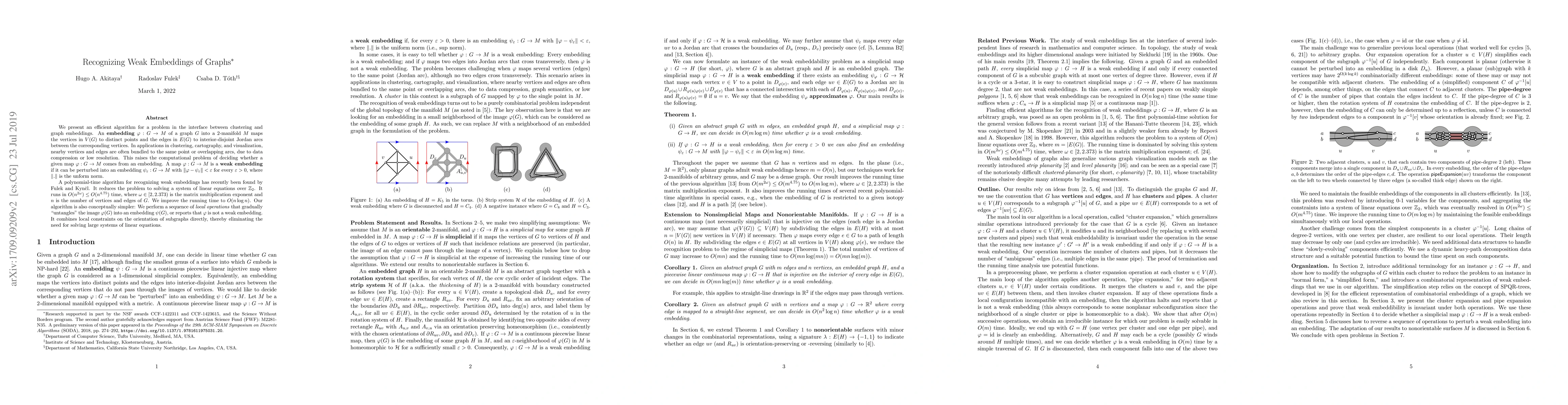 We present an efficient algorithm for a problem in the interface between clustering and graph embeddings. An embedding $\varphi:G\rightarrow M$ of a graph $G$ into a 2-manifold $M$ maps the vertices in $V(G)$ to distinct points and the edges in $E(G)$ to interior-disjoint Jordan arcs between the corresponding vertices. In applications in clustering, cartography, and visualization, nearby vertices and edges are often bundled to the same point or overlapping arcs, due to data compression or low resolution. This raises the computational problem of deciding whether a given map $\varphi:G\rightarrow M$ comes from an embedding. A map $\varphi:G\rightarrow M$ is a \textbf{weak embedding} if it can be perturbed into an embedding $\psi_\varepsilon:G\rightarrow M$ with $\|\varphi-\psi_\varepsilon\|<\varepsilon$ for every $\varepsilon>0$, where $\|.\|$ is the unform norm. A polynomial-time algorithm for recognizing weak embeddings has recently been found by Fulek and Kyn\v{c}l. It reduces the problem to solving a system of linear equations over $\mathbb{Z}_2$. It runs in $O(n^{2\omega})\leq O(n^{4.75})$ time, where $\omega\in [2,2.373)$ is the matrix multiplication exponent and $n$ is the number of vertices and edges of $G$. We improve the running time to $O(n\log n)$. Our algorithm is also conceptually simpler: We perform a sequence of \emph{local operations} that gradually "untangles" the image $\varphi(G)$ into an embedding $\psi(G)$, or reports that $\varphi$ is not a weak embedding. It combines local constraints on the orientation of subgraphs directly, thereby eliminating the need for solving large systems of linear equations.