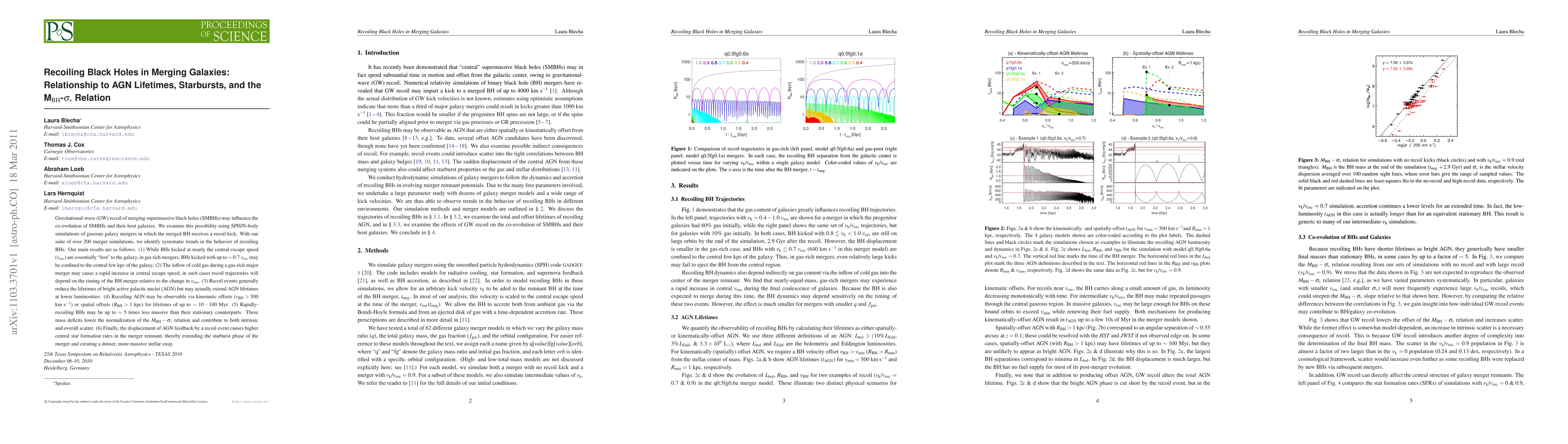 This paper explores the gravitational-wave recoil of merging supermassive black holes (SMBHs) and its impact on galaxy evolution through SPH/N-body simulations. Key findings include the confinement of recoiling black holes in gas-rich mergers and the influence of recoil events on AGN lifetimes, mass deficits, and star formation rates in the merger remnant.