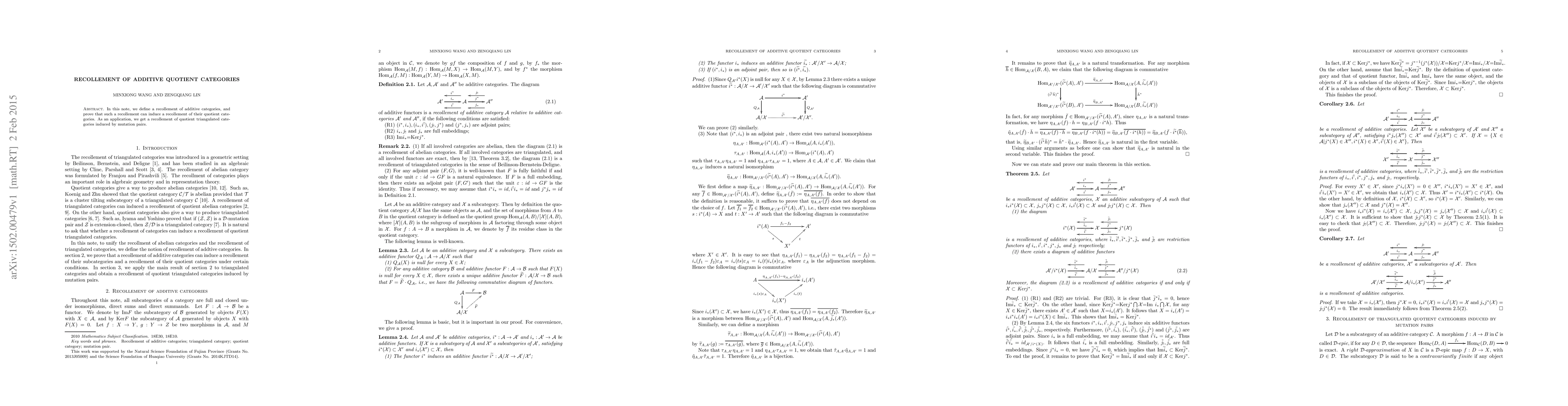 This paper defines a recollement for additive categories and shows it induces a recollement for their quotient categories. An application demonstrates a recollement of quotient triangulated categories via mutation pairs.