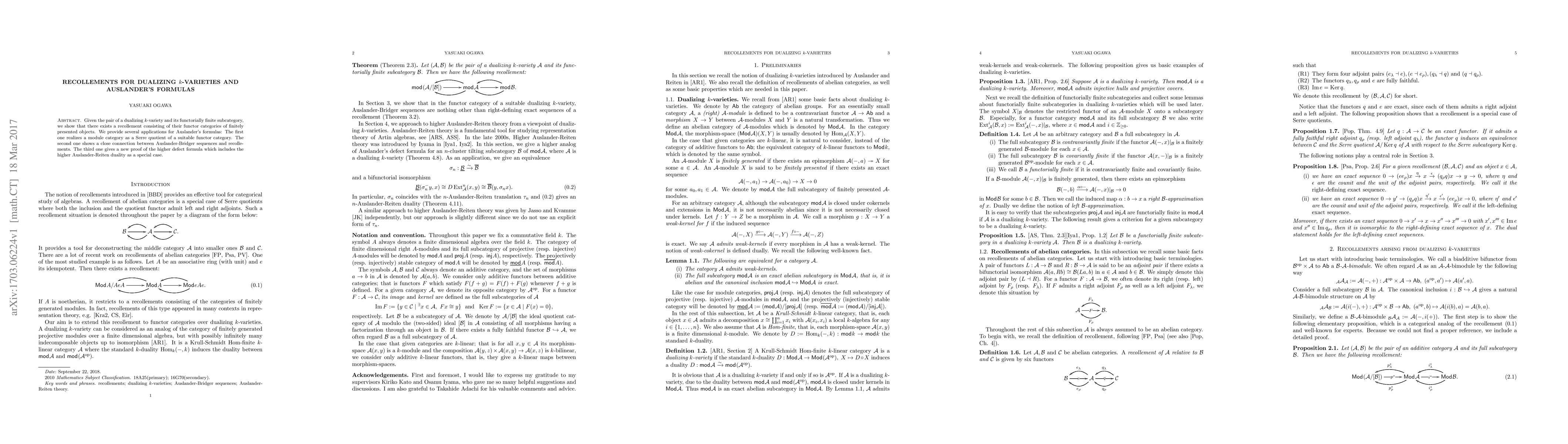 This paper demonstrates a recollement structure for dualizing $k$-varieties and their functorially finite subcategories, applying it to derive new insights into Auslander's formulas, including module category realizations, connections to Auslander-Bridger sequences, and a novel proof of the higher defect formula.