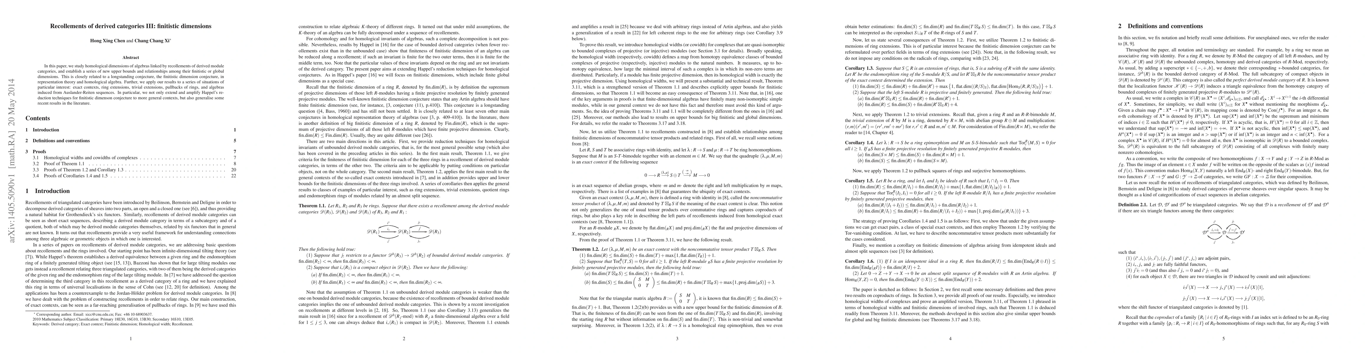 This paper investigates homological dimensions of algebras connected through recollements of derived module categories, establishing new upper bounds and relationships for their finitistic or global dimensions. The results contribute to resolving the finitistic dimension conjecture and extend Happel’s reduction techniques to broader contexts, including exact contexts, ring extensions, and algebras from Auslander-Reiten sequences.