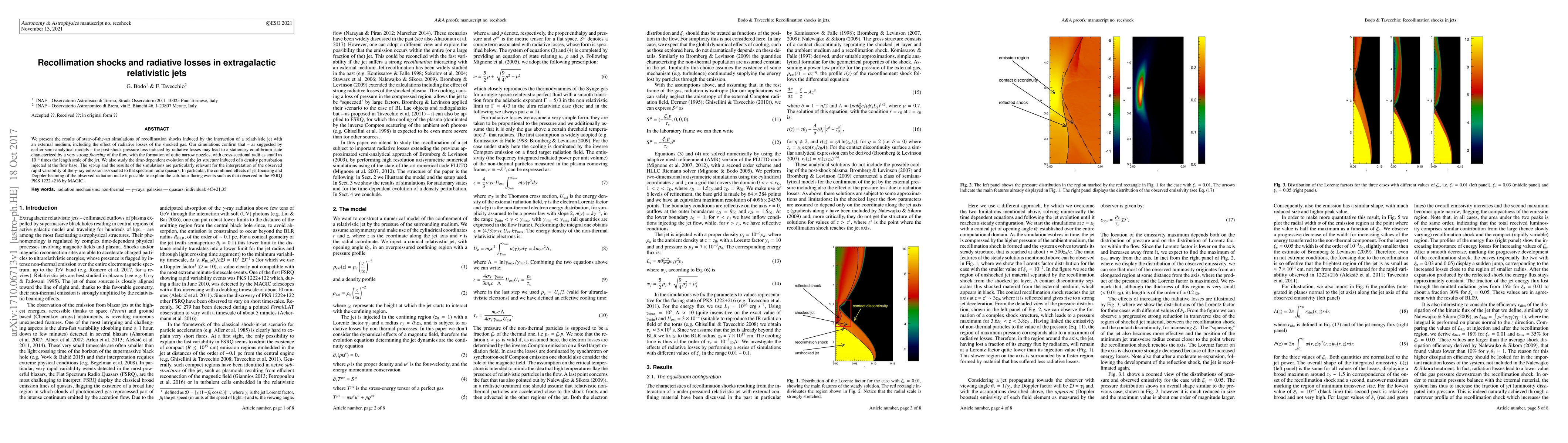 Simulations reveal that recollimation shocks in relativistic jets can lead to narrow nozzles with strong focusing of the flow due to radiative losses, relevant for understanding rapid variability in flat spectrum radio quasars.
