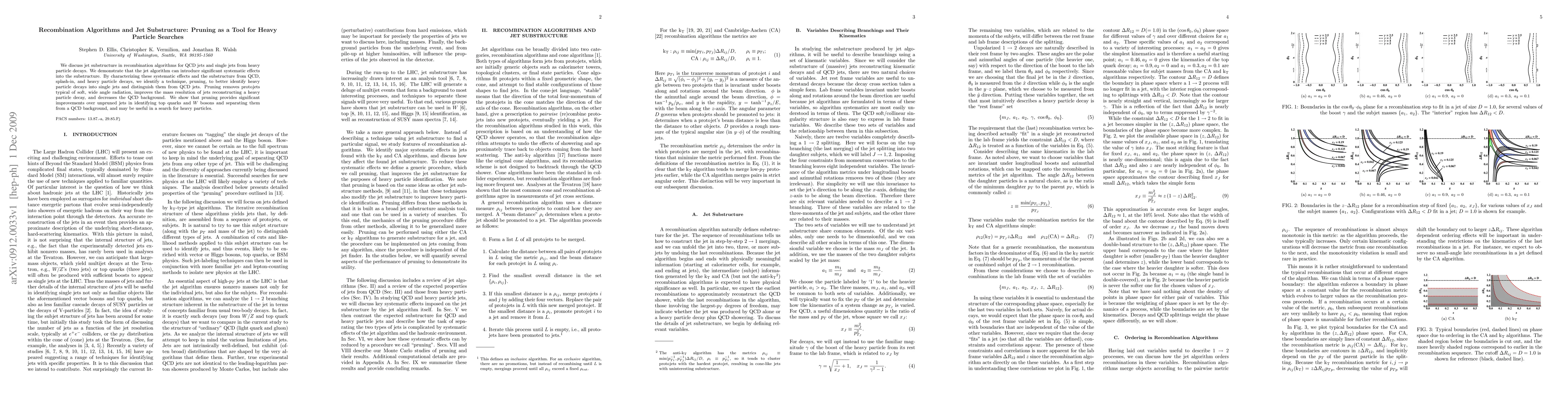 This paper explores jet substructure in recombination algorithms and introduces pruning as a method to enhance the identification of heavy particle decays, distinguishing them from QCD jets. Pruning improves mass resolution and reduces QCD background, showing significant effectiveness in identifying top quarks and W bosons.