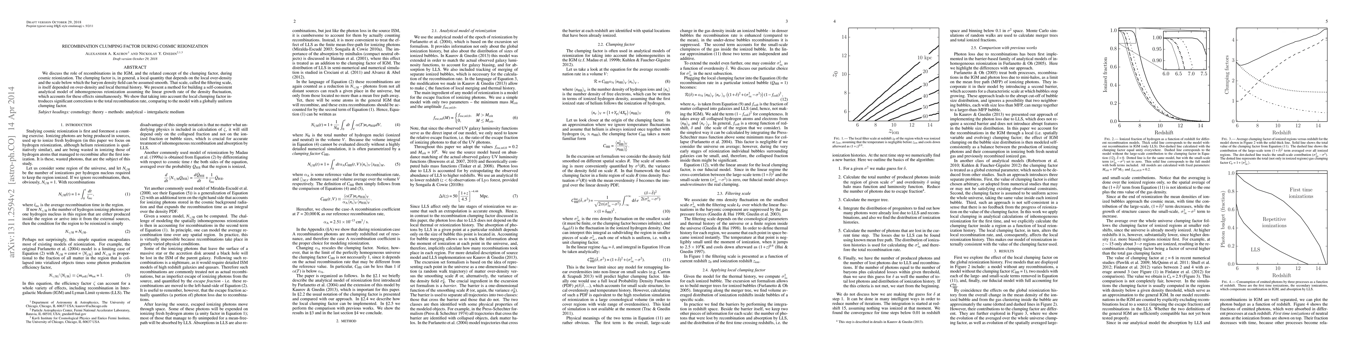 We discuss the role of recombinations in the IGM, and the related concept of the clumping factor, during cosmic reionization. The clumping factor is, in general, a local quantity that depends on the local over-density and the scale below which the baryon density field can be assumed smooth. That scale, called the filtering scale, is itself depended on over-density and local thermal history. We present a method for building a self-consistent analytical model of inhomogeneous reionization assuming the linear growth rate of the density fluctuation, which accounts for these effects simultaneously. We show that taking into account the local clumping factor introduces significant corrections to the total recombination rate, comparing to the model with a globally uniform clumping factor.