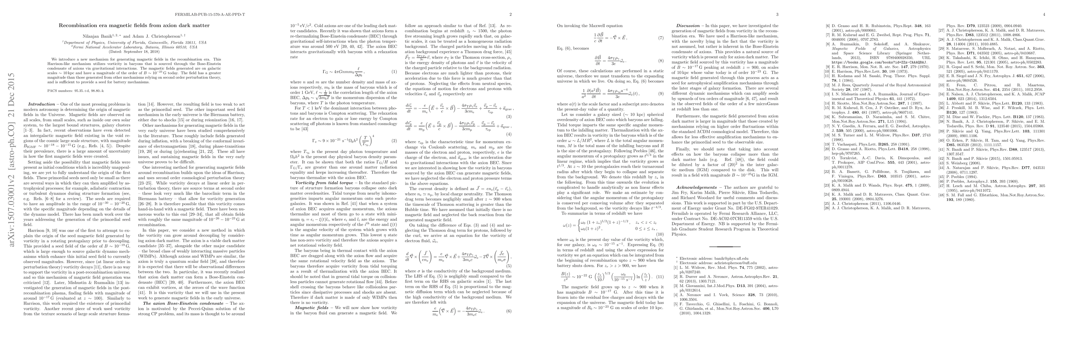 We introduce a new mechanism for generating magnetic fields in the recombination era. This Harrison-like mechanism utilizes vorticity in baryons that is sourced through the Bose-Einstein condensate of axions via gravitational interactions. The magnetic fields generated are on the galactic scales $\sim 10\,{\rm kpc}$ and have a magnitude of the order of $B\sim10^{-23}\,{\rm G}$ today. The field has a greater magnitude than those generated from other mechanisms relying on second order perturbation theory, and is sufficient to provide a seed for battery mechanisms.