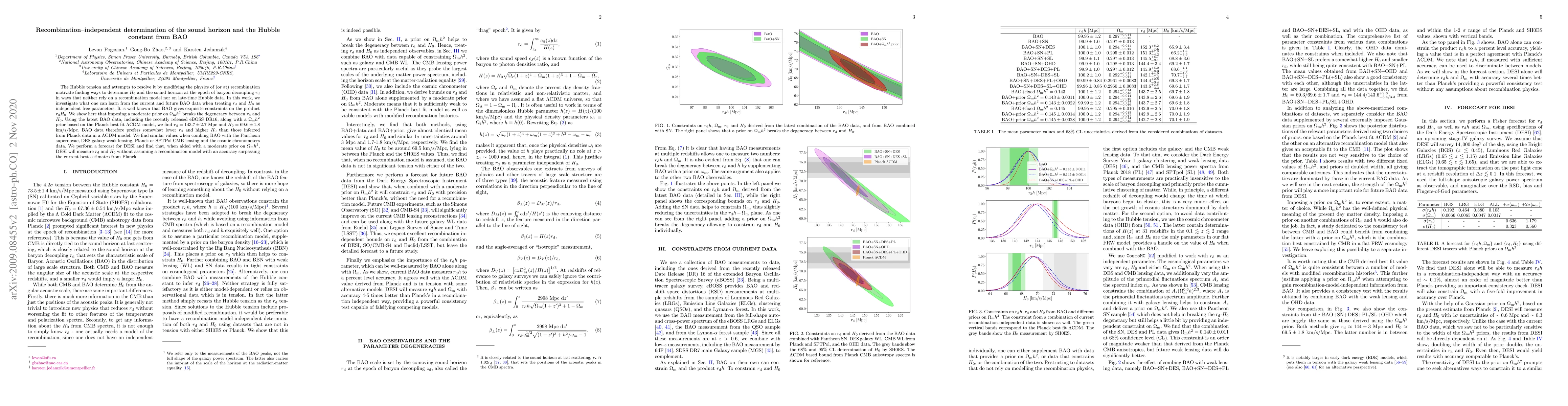 This paper explores the determination of the Hubble constant $H_0$ and the sound horizon $r_{\rm d}$ at the epoch of baryon decoupling using Baryon Acoustic Oscillation (BAO) data, independent of recombination models and late-time Hubble data. It finds $r_{\rm d} = 143.7 \pm 2.7$ Mpc and $H_0 = 69.6 \pm 1.8$ km/s/Mpc, indicating lower $r_{\rm d}$ and higher $H_0$ compared to Planck $\Lambda$CDM model estimates.