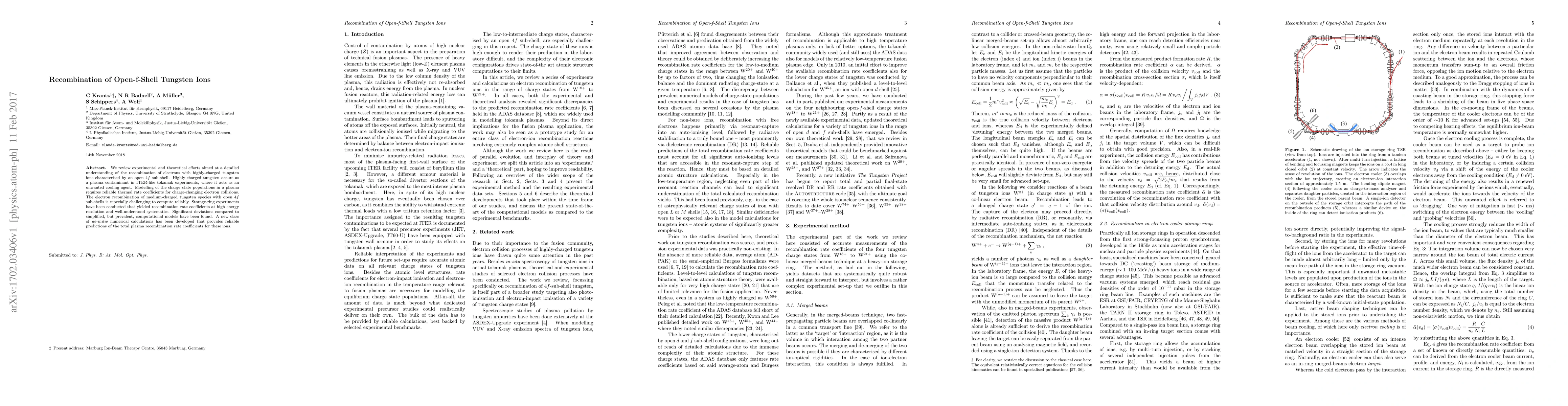 We review experimental and theoretical efforts aimed at a detailed understanding of the recombination of electrons with highly-charged tungsten ions characterised by an open 4f sub-shell. Highly-charged tungsten occurs as a plasma contaminant in ITER-like tokamak experiments, where it acts as an unwanted cooling agent. Modelling of the charge state populations in a plasma requires reliable thermal rate coefficients for charge-changing electron collisions. The electron recombination of medium-charged tungsten species with open 4f sub-shells is especially challenging to compute reliably. Storage-ring experiments have been conducted that yielded recombination rate coefficients at high energy resolution and well-understood systematics. Significant deviations compared to simplified, but prevalent, computational models have been found. A new class of ab-initio numerical calculations has been developed that provides reliable predictions of the total plasma recombination rate coefficients for these ions.