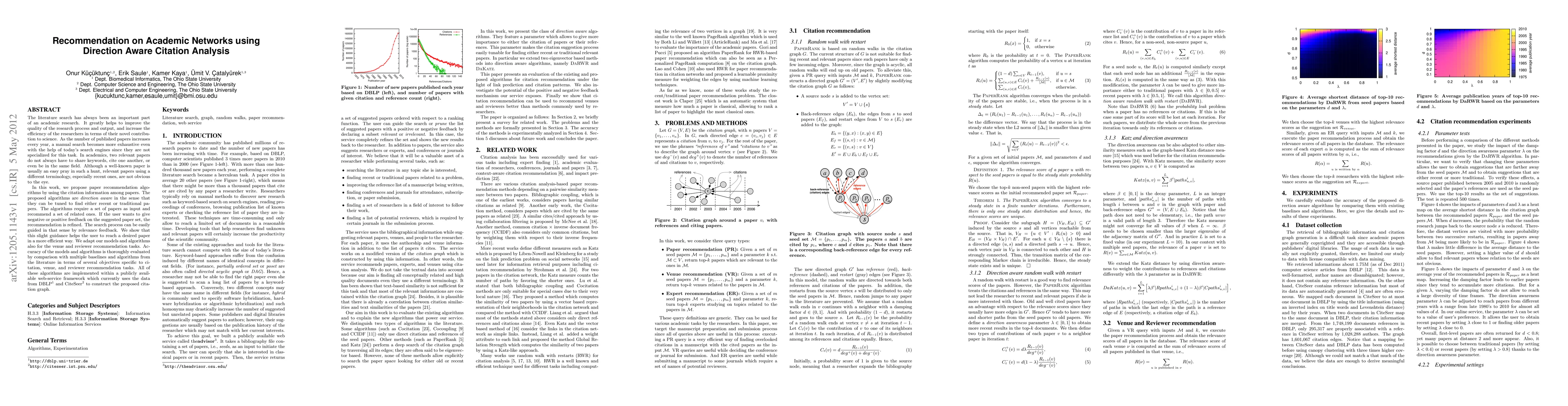 This paper proposes recommendation algorithms that leverage direction-aware citation information to suggest relevant academic papers, venues, and reviewers. The algorithms can be tuned to prioritize recent or traditional papers and refine recommendations based on user feedback, enhancing search efficiency. The effectiveness of these algorithms is evaluated against multiple baselines and implemented in a public web-service framework.