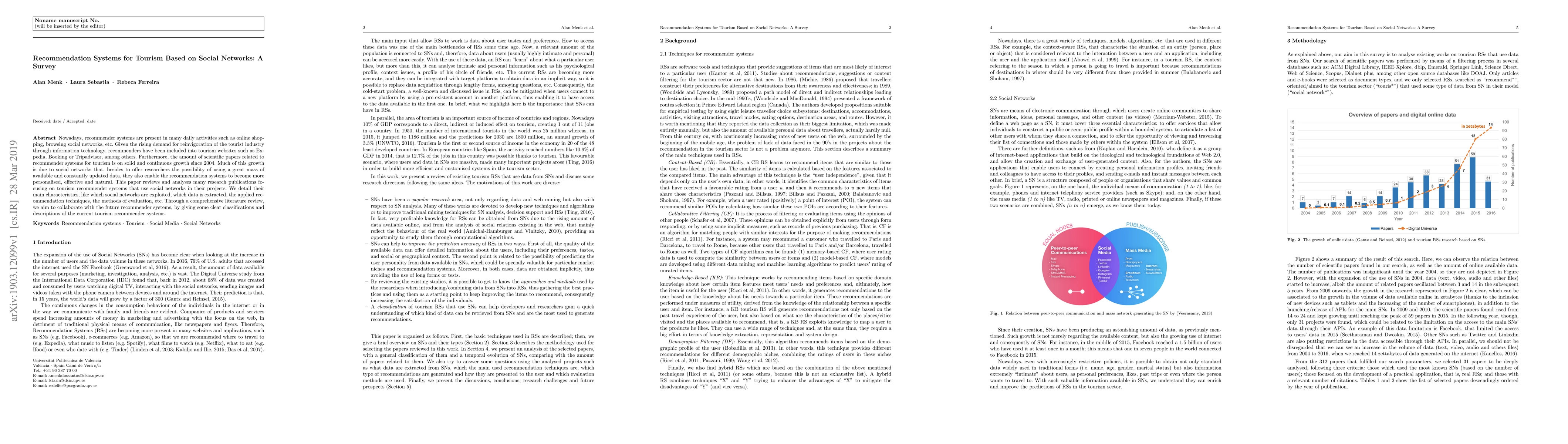 This paper surveys research on recommender systems in tourism, highlighting their integration into websites like Expedia and Booking, and emphasizing the growing role of social networks in enhancing personalization and effectiveness. The review analyzes key features, techniques, and evaluation methods used in current tourism recommender systems.