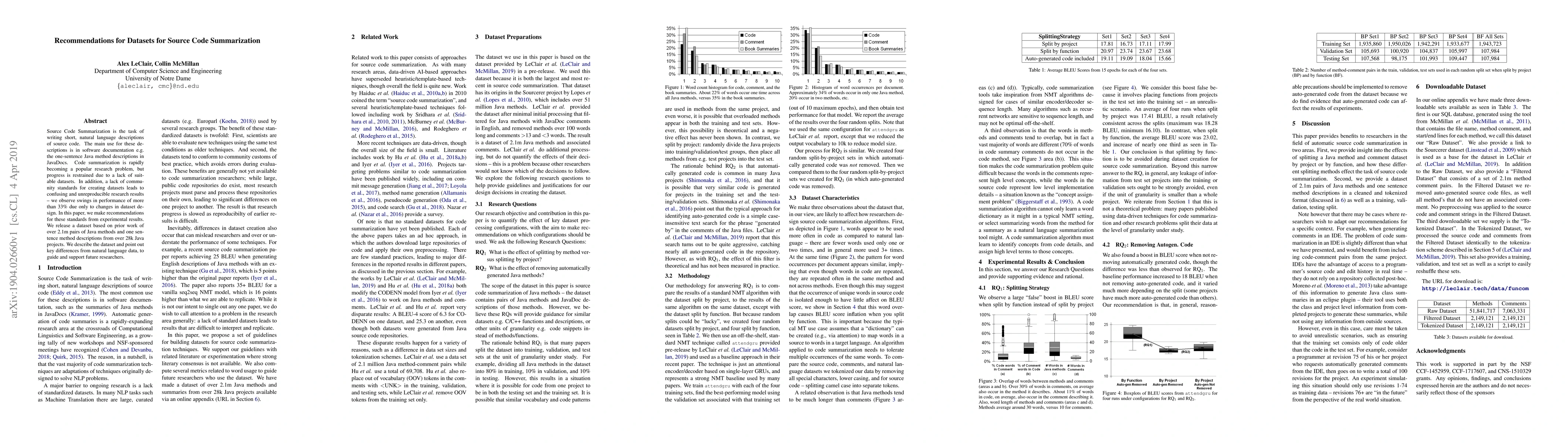 This paper recommends standards for datasets used in source code summarization, addressing the lack of suitable datasets and community standards. It releases a new dataset of over 2.1 million Java method pairs and highlights differences to natural language data to support future research.