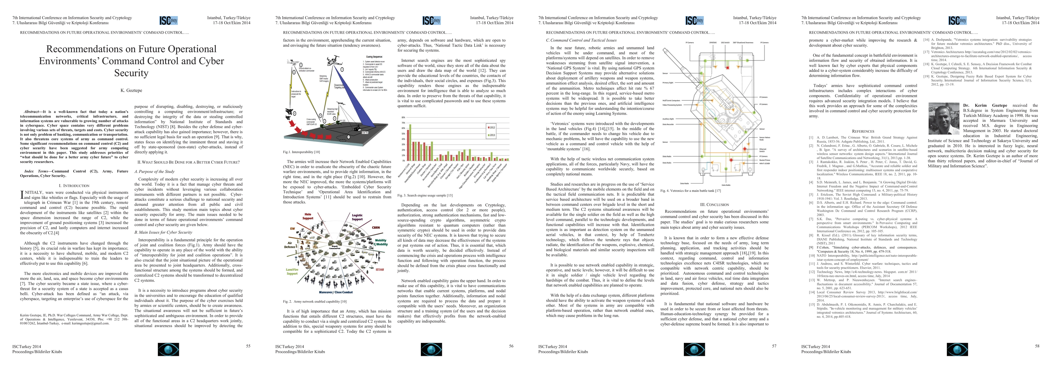 It is a well-known fact that today a nation's telecommunication networks, critical infrastructure, and information systems are vulnerable to growing number of attacks in cyberspace. Cyber space contains very different problems involving various sets of threats, targets and costs. Cyber security is not only problem of banking, communication or transportation. It also threatens core systems of army as command control. Some significant recommendations on command control (C2) and cyber security have been suggested for army computing environment in this paper. This study addresses priorities of "what should be done for a better army cyber future" to cyber security researchers.