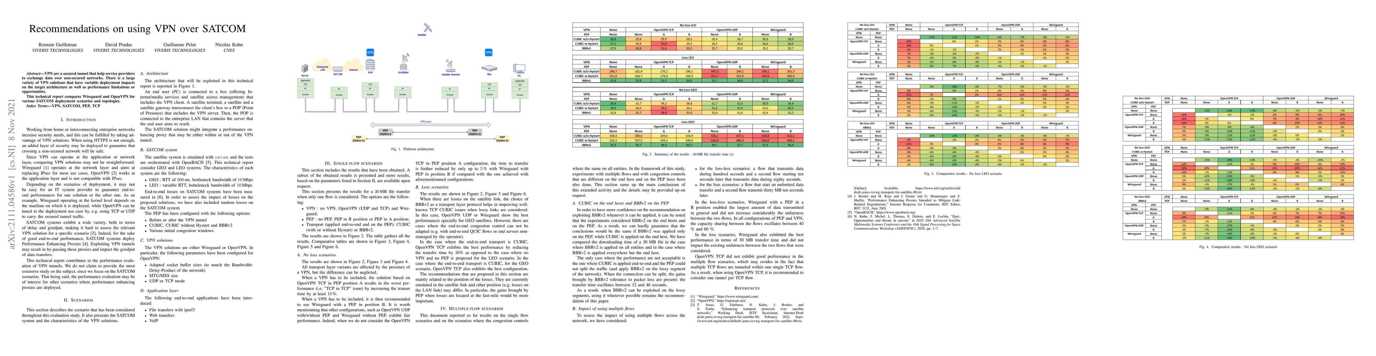 This report evaluates the deployment and performance of Wireguard and OpenVPN for VPN usage over SATCOM networks, highlighting their respective impacts and suitability for various SATCOM topologies.