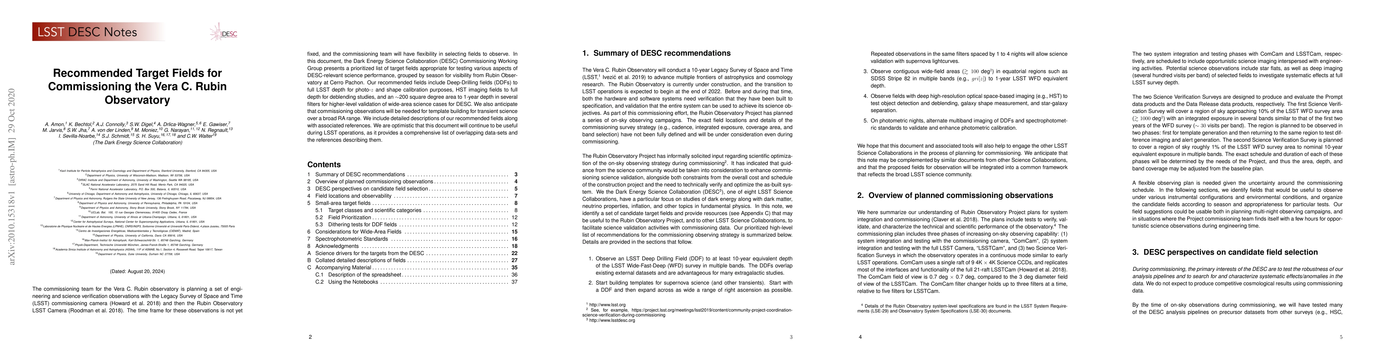 The paper presents a detailed list of recommended target fields with associated references, providing a solid foundation for commissioning the Rubin Observatory's Legacy Survey of Space and Time (LSST) camera.
