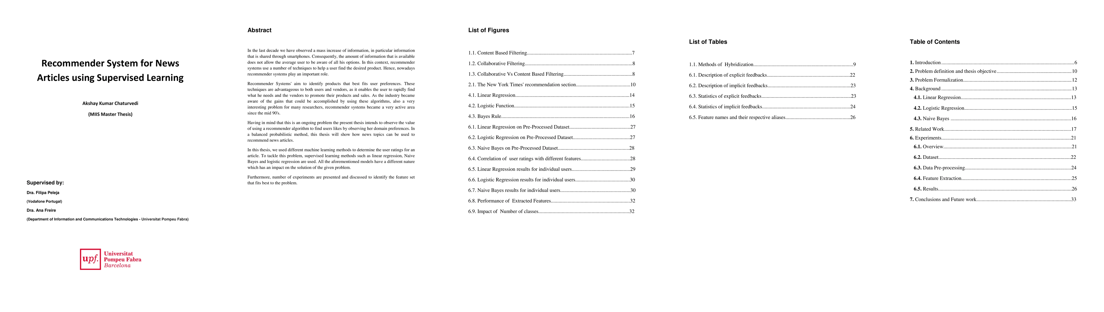 This research paper explores the use of supervised learning methods to recommend news articles based on user preferences, using techniques such as linear regression, Naive Bayes, and logistic regression.
