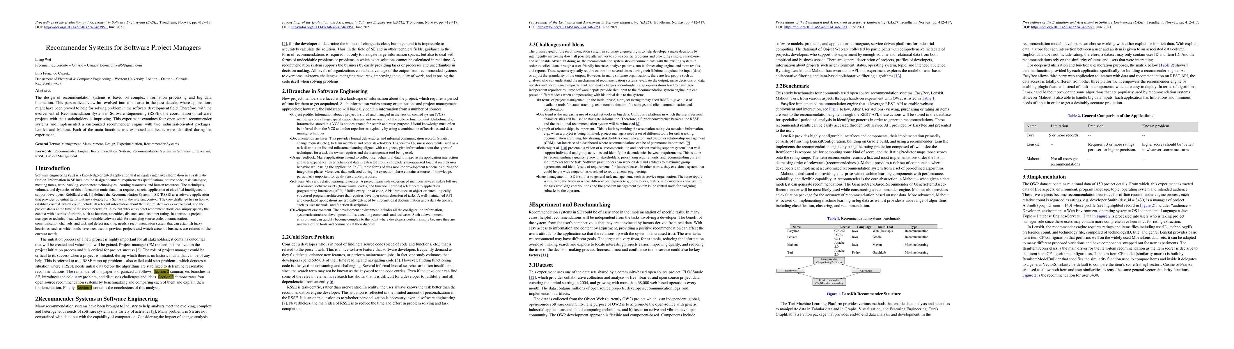 This paper explores the application of recommender systems in software engineering to enhance project management coordination. The study examines four open-source recommender systems and implements a customized engine using Lenskit and Mahout, identifying issues in each main function.