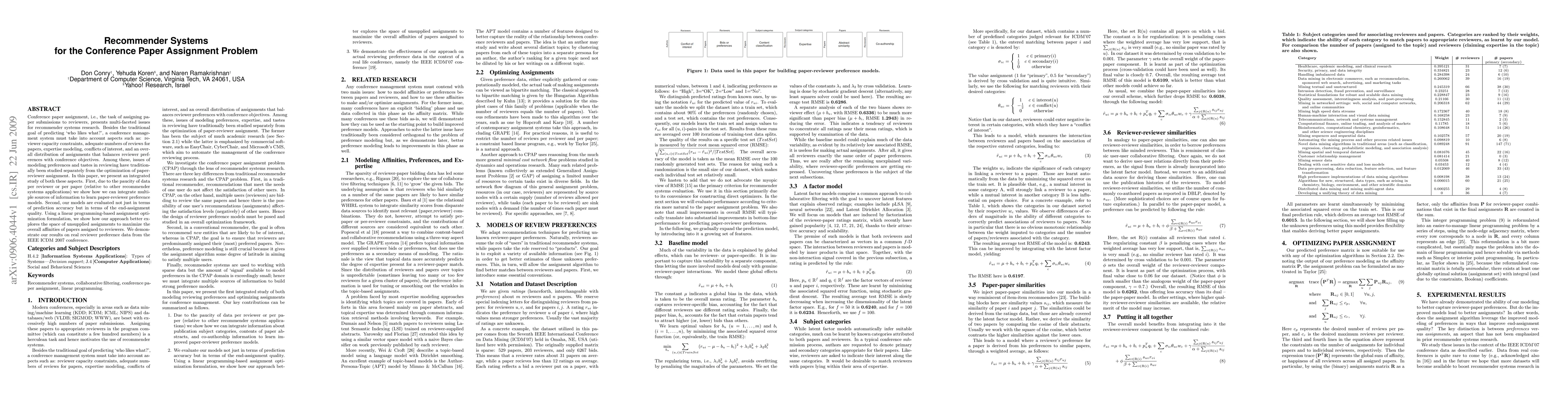 This paper proposes an integrated approach for conference paper assignment using recommender systems, addressing reviewer capacity, expertise, and conflict of interest. It combines preference modeling with optimization to enhance assignment quality, evaluated through real data from the IEEE ICDM 2007 conference.