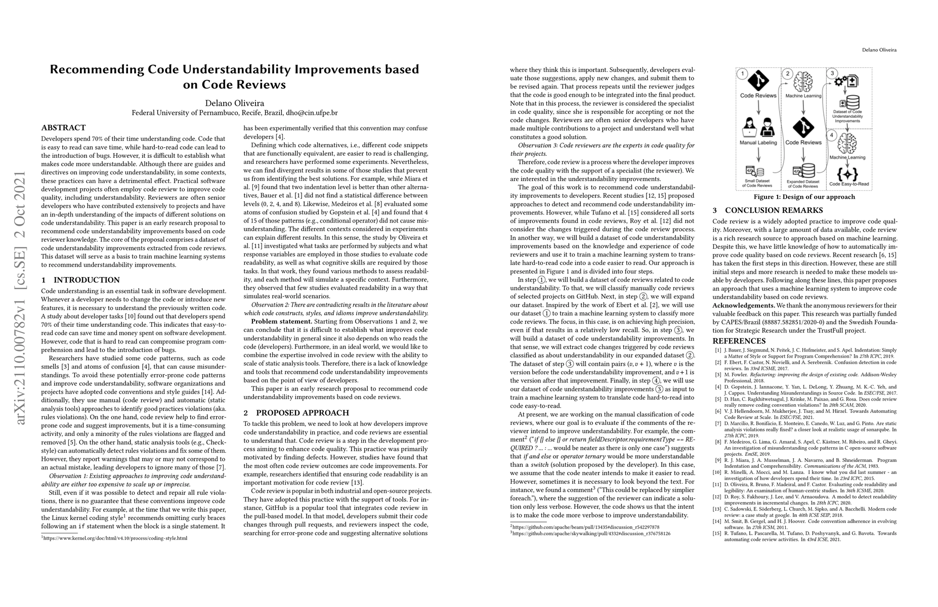 This paper proposes a method to recommend code understandability improvements using insights from code reviews conducted by senior developers. The aim is to create a dataset from these reviews to train machine learning systems for better code readability and reduced bugs.