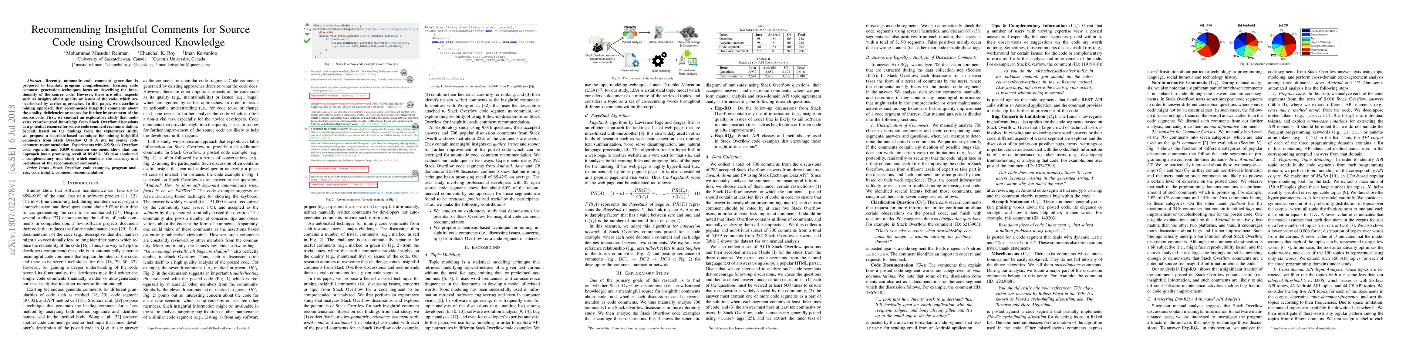 Recently, automatic code comment generation is proposed to facilitate program comprehension. Existing code comment generation techniques focus on describing the functionality of the source code. However, there are other aspects such as insights about quality or issues of the code, which are overlooked by earlier approaches. In this paper, we describe a mining approach that recommends insightful comments about the quality, deficiencies or scopes for further improvement of the source code. First, we conduct an exploratory study that motivates crowdsourced knowledge from Stack Overflow discussions as a potential resource for source code comment recommendation. Second, based on the findings from the exploratory study, we propose a heuristic-based technique for mining insightful comments from Stack Overflow Q & A site for source code comment recommendation. Experiments with 292 Stack Overflow code segments and 5,039 discussion comments show that our approach has a promising recall of 85.42%. We also conducted a complementary user study which confirms the accuracy and usefulness of the recommended comments.