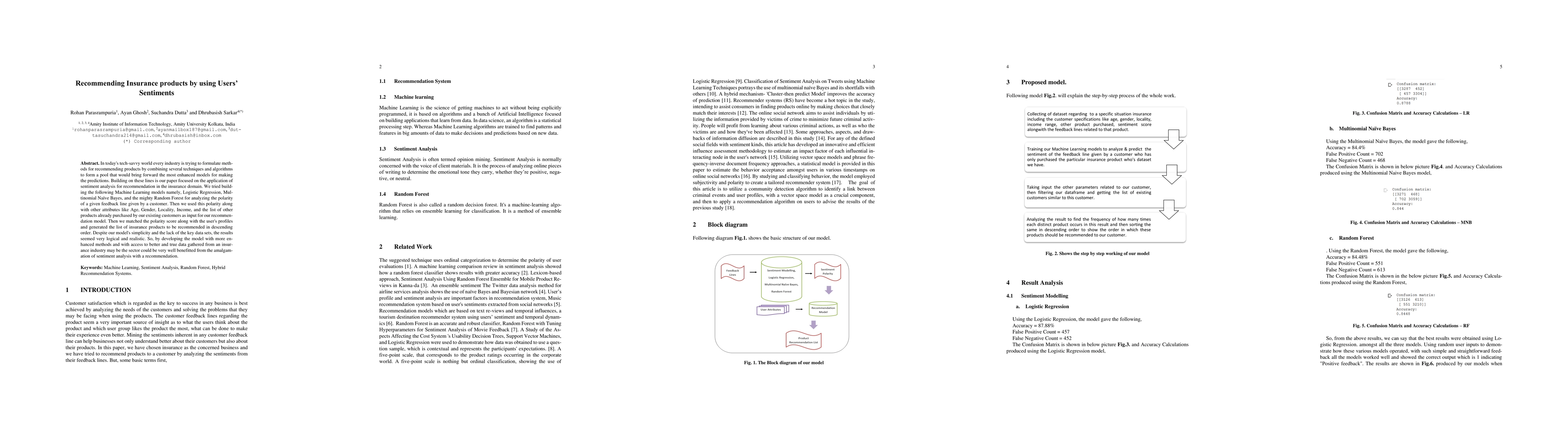 A study explored using sentiment analysis to recommend insurance products based on customer feedback, with promising results despite simplicity and limited data; the approach holds promise for enhancing recommendation models in the industry.
