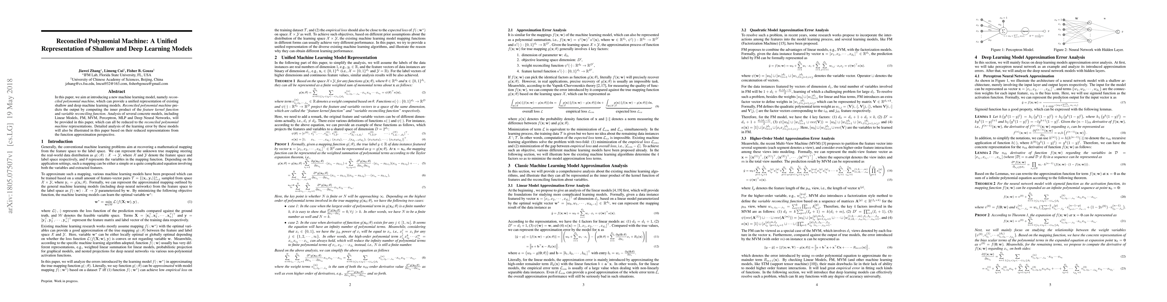 This paper introduces a reconciled polynomial machine, a unified representation that encompasses both shallow and deep learning models. It demonstrates how various models, including Linear Models, FM, MVM, Perceptron, MLP, and Deep Neural Networks, can be reduced to this new framework, providing insights into their learning errors from a function approximation perspective.