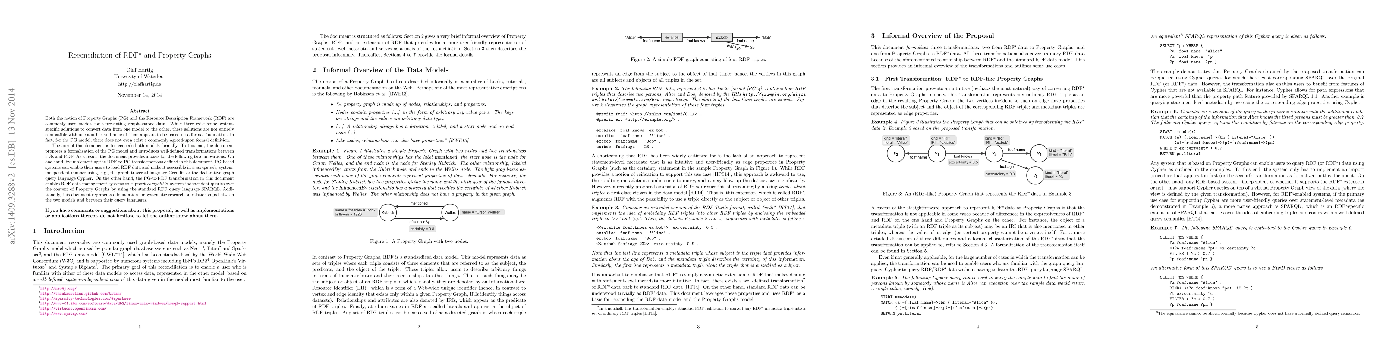 This paper formally reconciles Property Graphs (PG) and RDF by proposing a well-defined transformation between the two models. It establishes a formal definition for PGs and provides system-independent transformations, enabling PG systems to load RDF data and vice versa, thus fostering compatibility and interoperability.