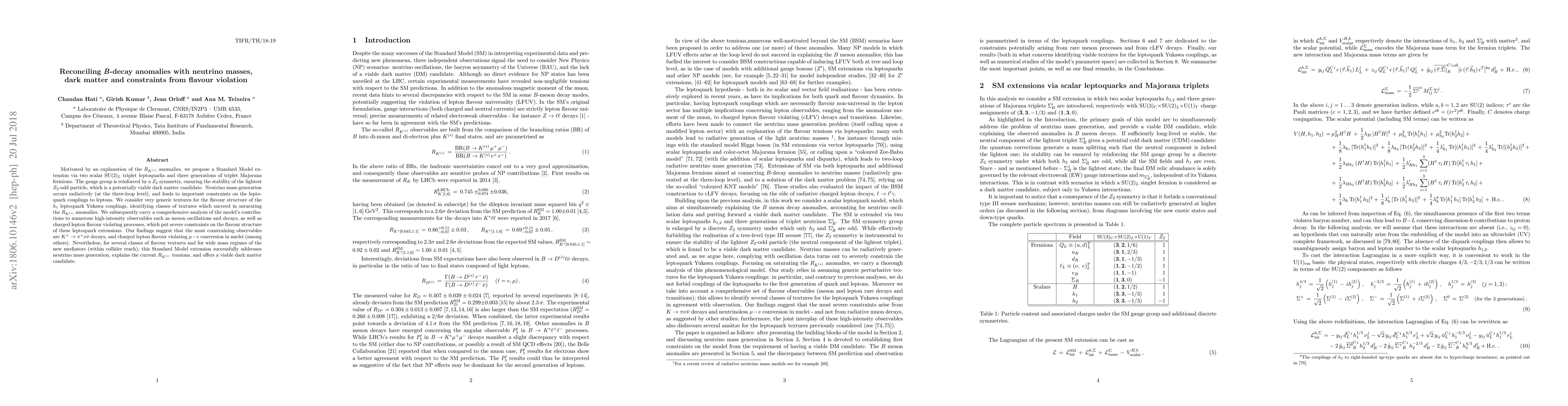 This paper proposes an extended Standard Model with two scalar SU(2)_L triplet leptoquarks and triplet Majorana fermions to explain the $R_{K^{(*)}}$ anomalies, generate neutrino masses radiatively, and provide a viable dark matter candidate. The model imposes stringent constraints on leptoquark couplings and flavor structures, particularly from $K^+ \to \pi^+ \nu \bar \nu$ decays and $\mu -e$ conversion in nuclei.